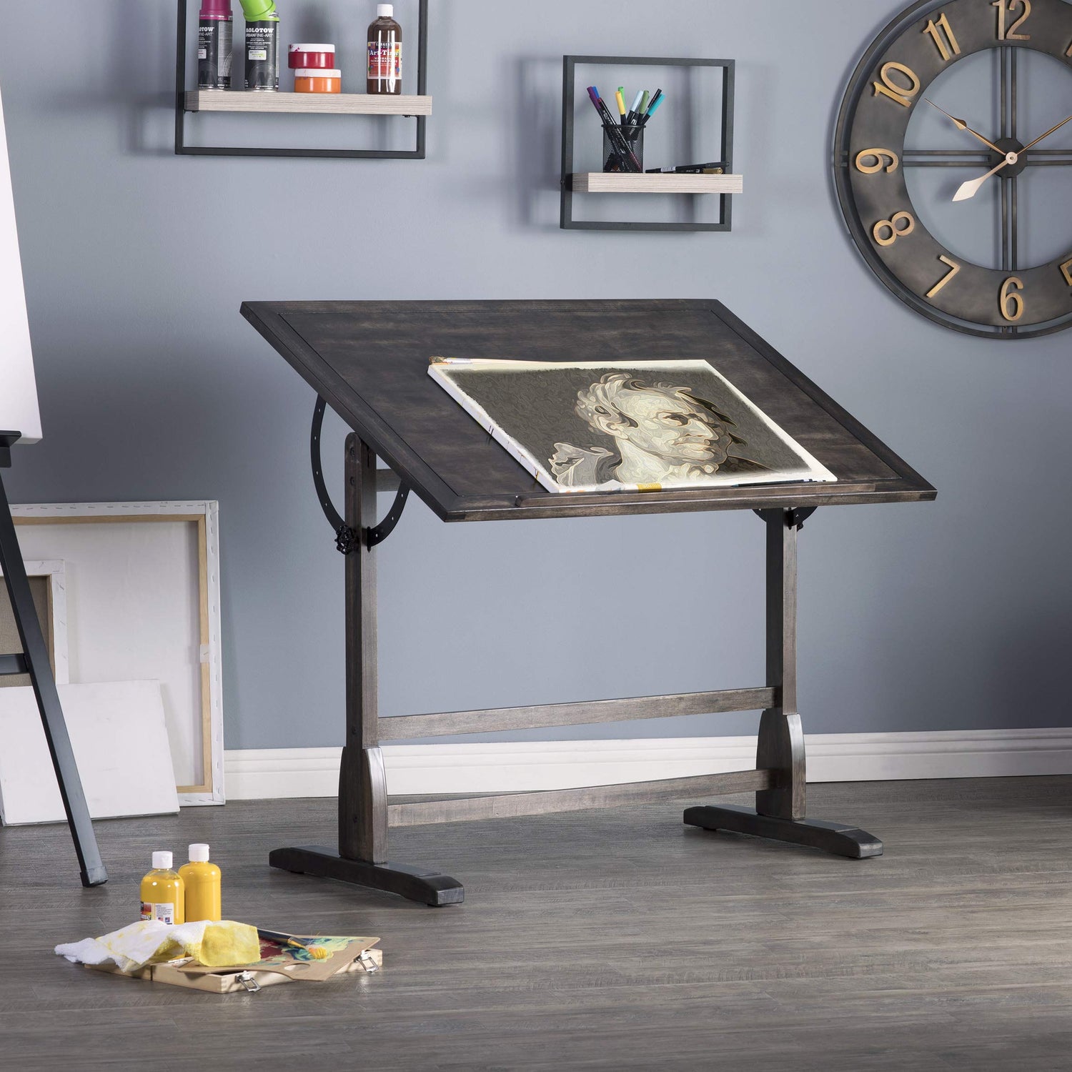 Studio Designs Vintage Drawing/Drafting Table with Pencil Ledge - 42" W x 30" D - Distressed Black - Adjustable Tilting Top