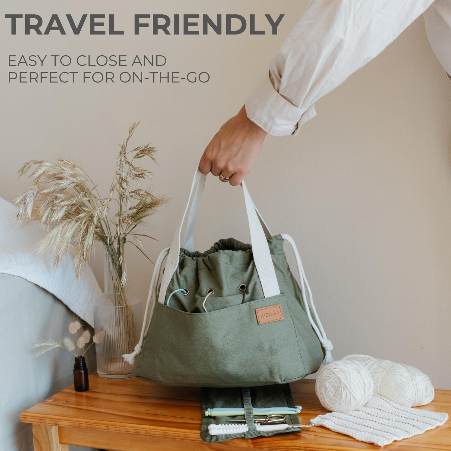 - Super Stylish & Ready to Go: Rock your creative journey in style! Its clever design, modern sage hue and durable, washable 100% canvas make it the ideal yarn storage organizer! With sturdy handles, you're always ready to craft, wherever your creativity takes you