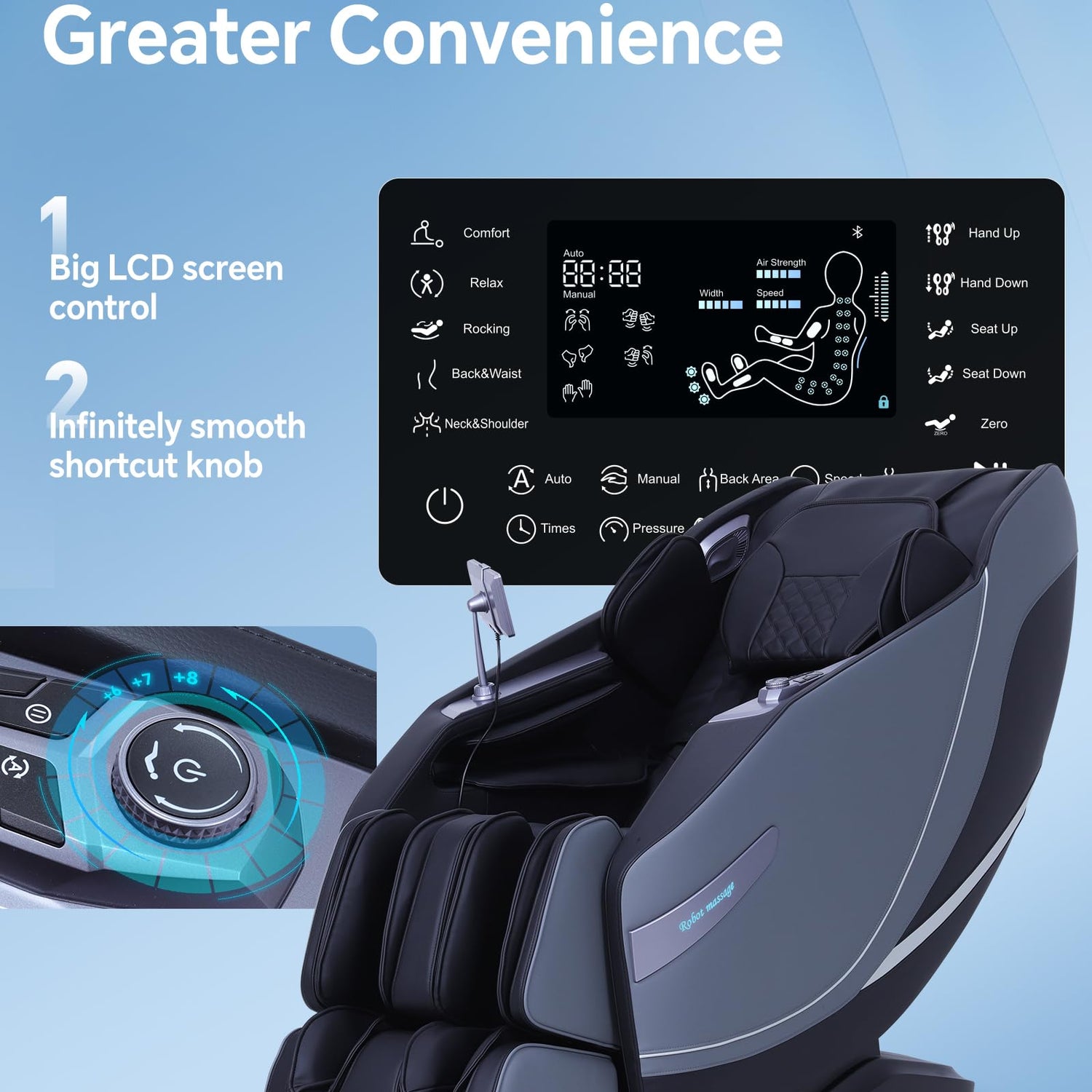 - 2 operation methods have been upgraded to this massage chair.Big LCD screen,show the main functions more clearly.Armrest shortcut keys,are set up for your frequently used functions, you can smoothly switch between massage modes.