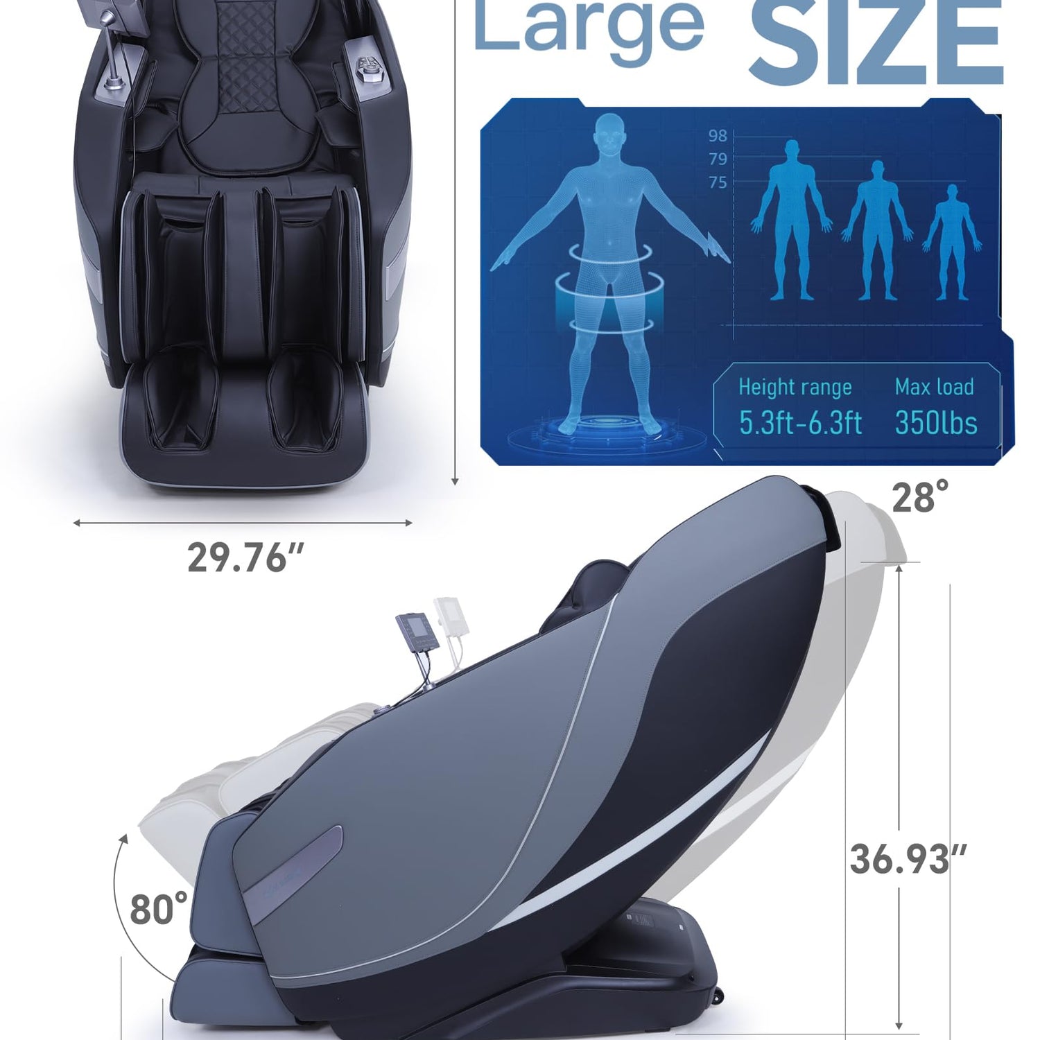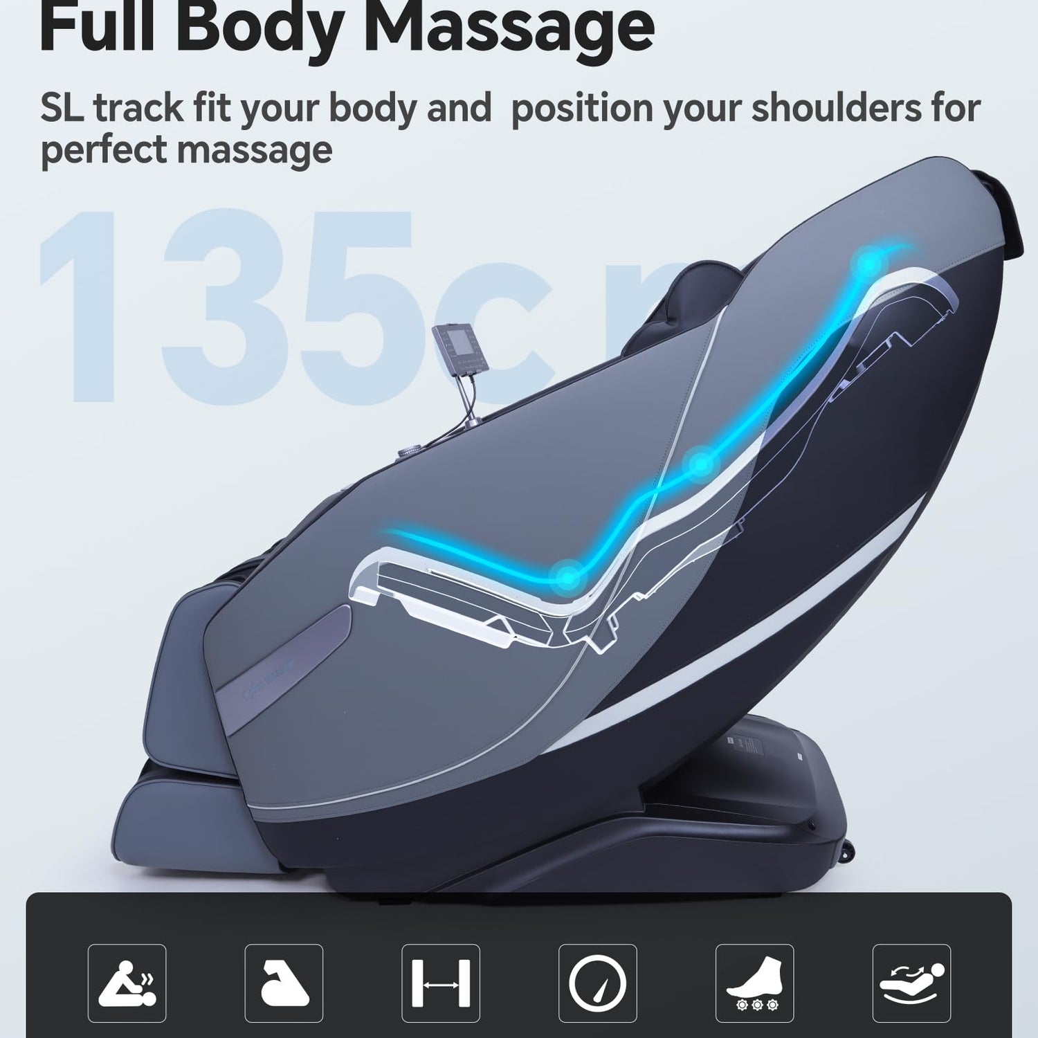 - Body detection and shoulder positioning in the massage recliner chair. 135cm SL track in massage chair, extends from shoulders to thighs ,fits your body perfectly.And massage speed, width, Lying angle can be adjusted.