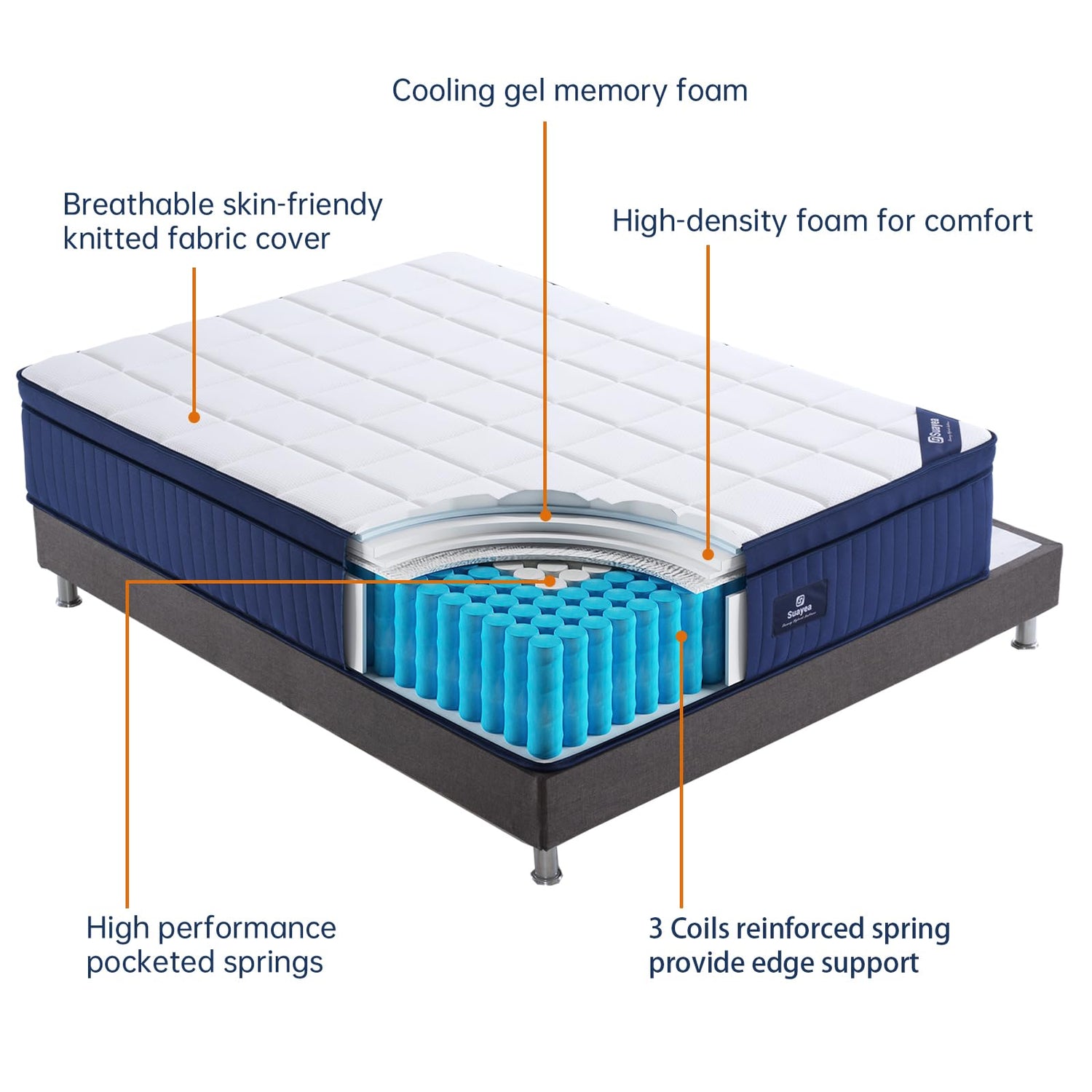 SUAYEA Queen Size Mattresses, 16 Inch Queen Mattress in a Box, Medium Pocket Spring and Gel Memory Foam for Superior Comfort, Pressure Relief, Strong Edge Support
