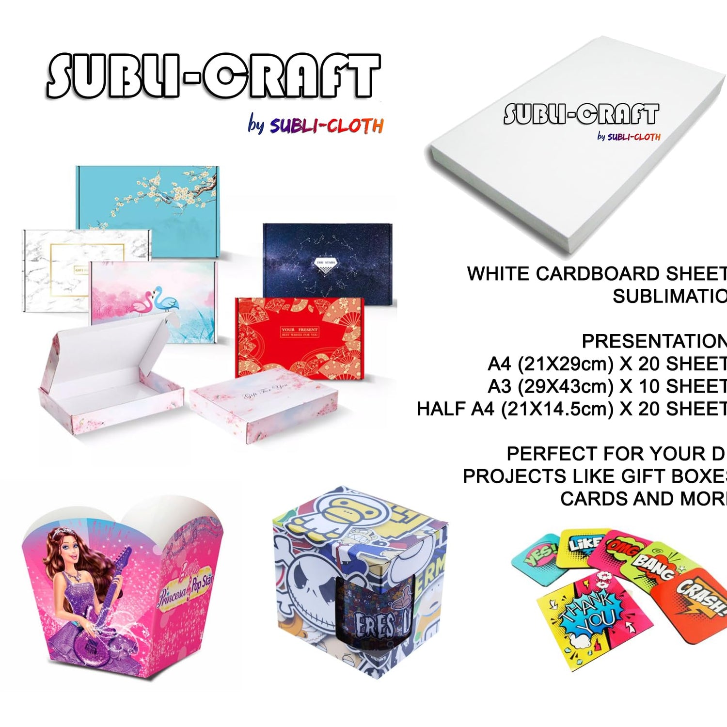 Subli-Craft Cardboard Sublimation Sheets A4 Pack 20 Units by Subli-Cloth (21cm x 29cm)