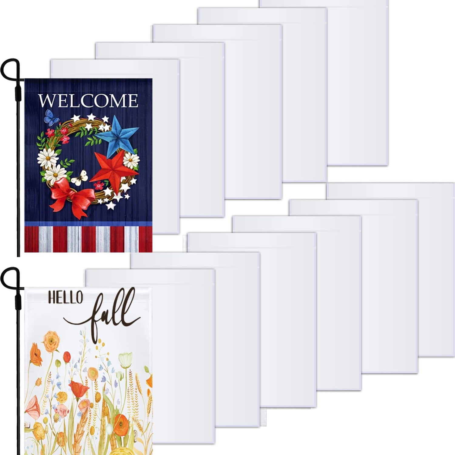 Sublimation Blanks Garden Flags Set of 13,DIY Lawn Garden Flag Polyester Banners 12 x 18 Inches Blank Yard Flags,Polyester Blank Flags for Heat Press for Indoor Outdoor Garden Decoration