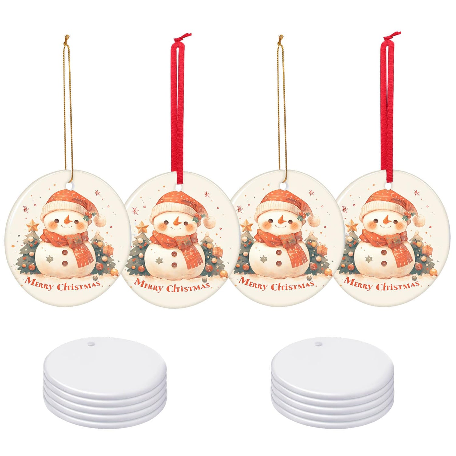 - SIZE AND QUANTITY: Set of 30 white ceramic round ornaments bulk with red and gold ribbons.The size is 3 Inch