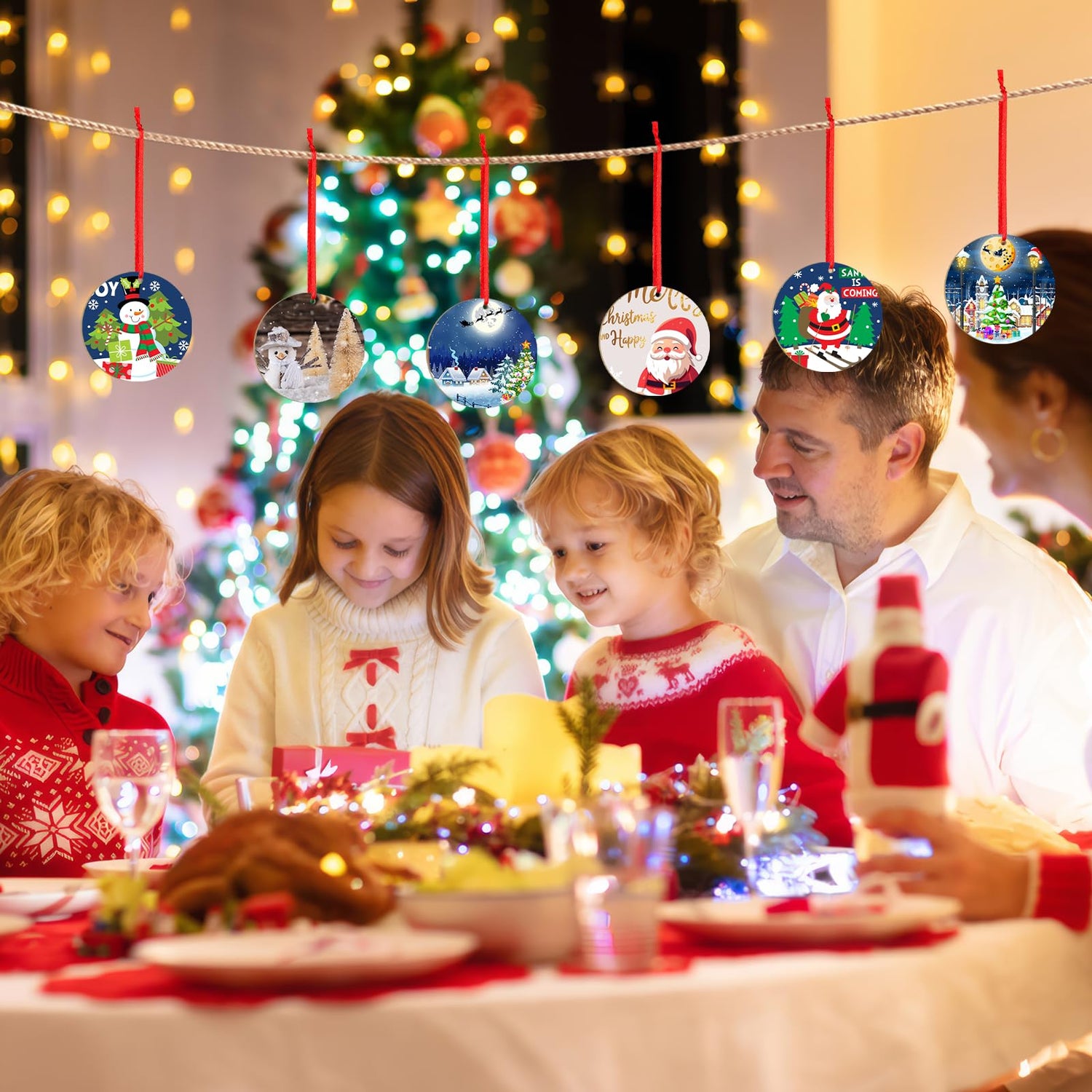 Sublimation Ornament Blanks 16PCS Personalized Christmas Ornaments Set Double-Sided Sublimation Ornaments with Red String, White Round DIY Handmade Crafts for Xmas Tree, Christmas Decorations Indoor