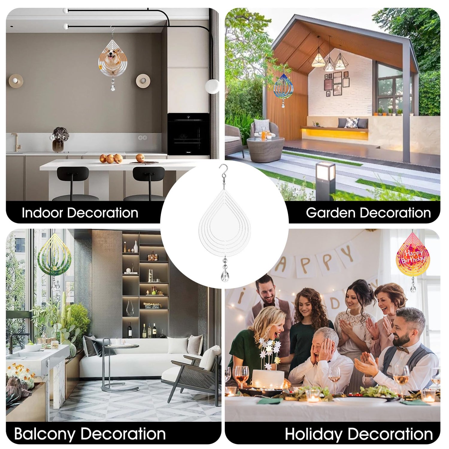 Sublimation Wind Spinner Blanks 8 Inch 4 Pack Wind Spinners Sublimation Blanks with Crystal Pendant Aluminum Metal Wind Spinners for Yard Garden Indoor Outdoor Window Porch Decoration(Waterdrop