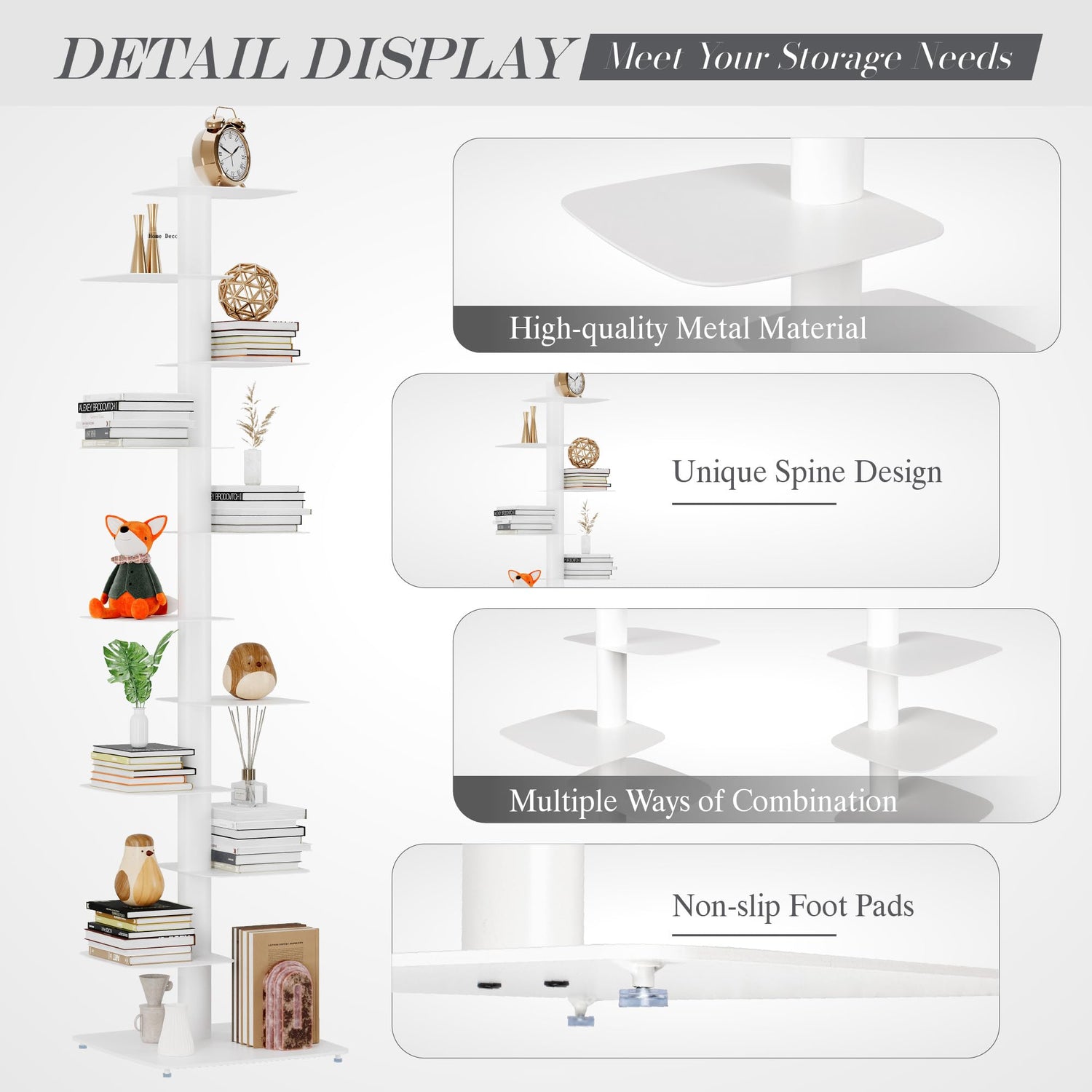 - Innovative 11-Tier Spine Bookshelf: Suchtale Spine Bookshelf is designed with 11 storage shelves, offering ample storage space. Its metal construction boasts a distinctive spine-like design, enhancing both its aesthetic appeal and its strength and durability. Suitable for a variety of settings, from compact areas to expansive open-concept layouts, this multifaceted bookshelf efficiently organizes items, ensuring your living space remains orderly and free of clutter.