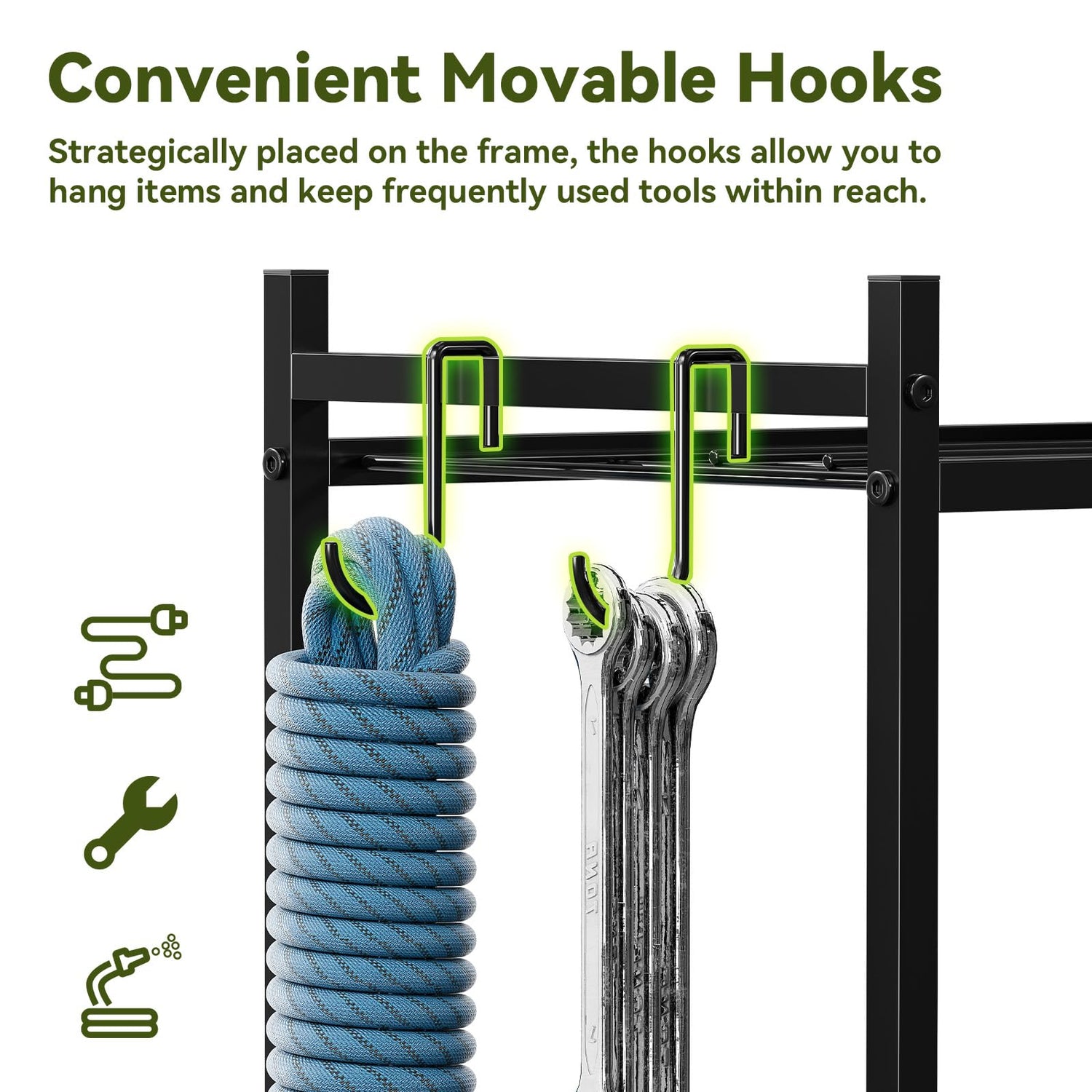 - 【Built to Last】Constructed from high-quality steel, this full-metal tool rack is durable, rust-resistant, and corrosion-proof. Unlike plastic alternatives, it offers unmatched strength and reliability for both indoor and outdoor use. Trust in its sturdiness to keep your tools organized year after year
