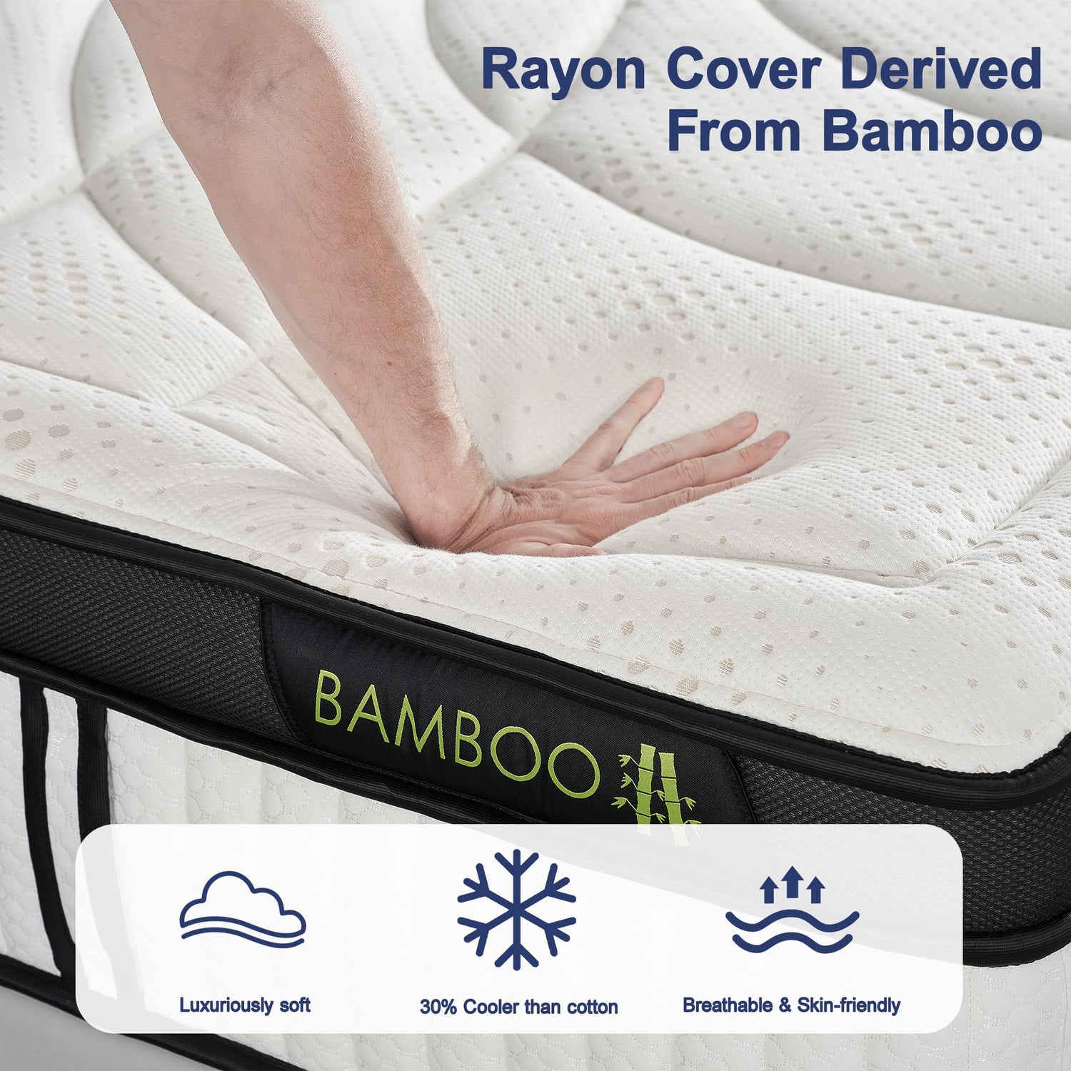 - Bamboo Rayon Cover For Cooling Sleep: The Rayon fabric cover made from Bamboo is superior soft, smooth and breathable, creating a luxurious sleeping surface. 3D mesh fabric sides and coil base promote more airflow throughout the mattress, so heat don’t get trapped. You’ll enjoy a cool night’s sleep with less tossing and turning.