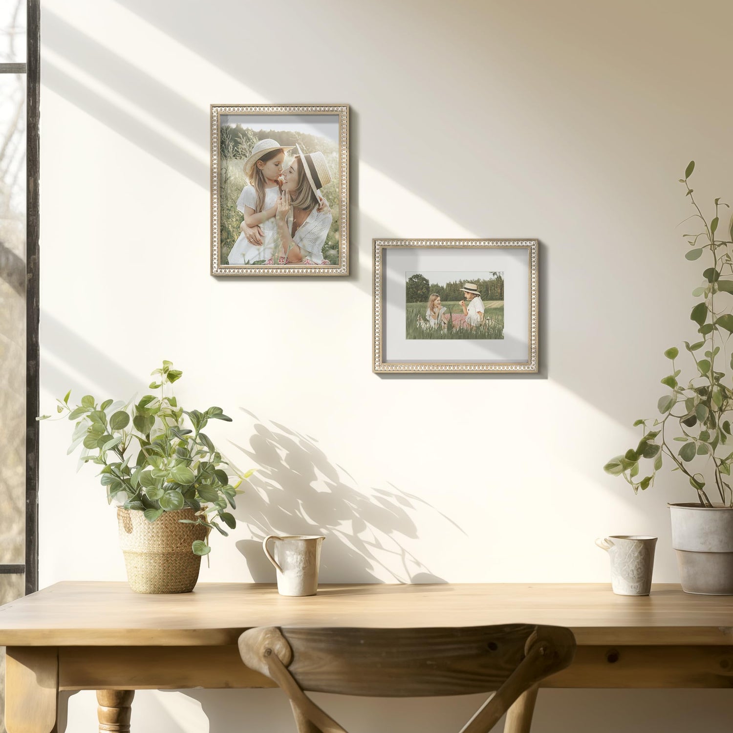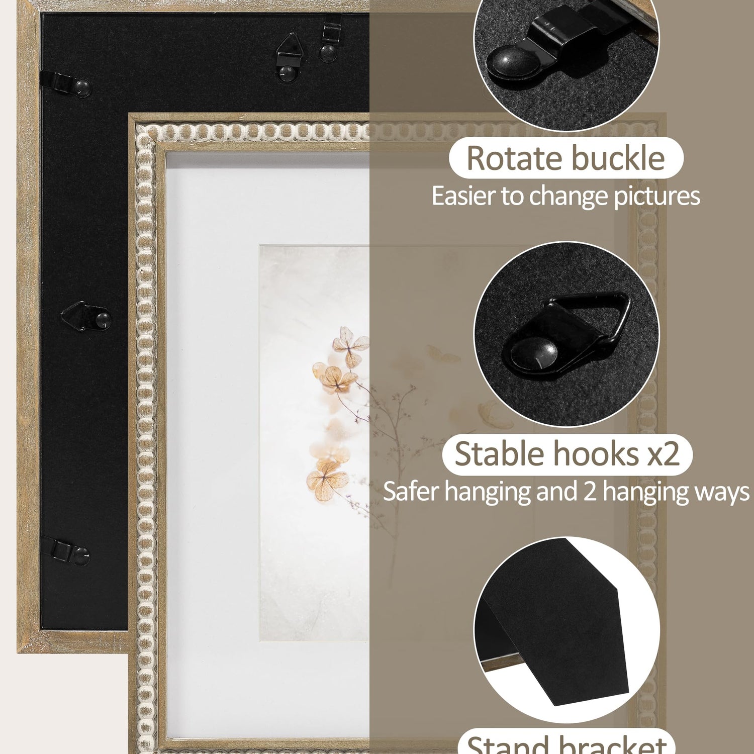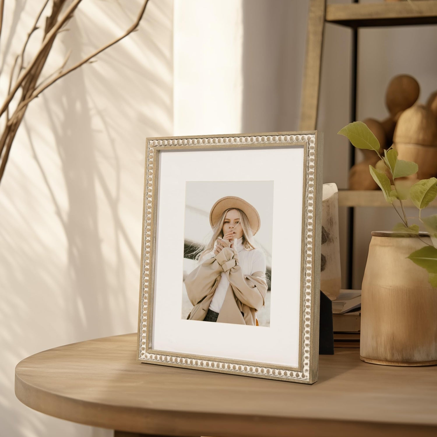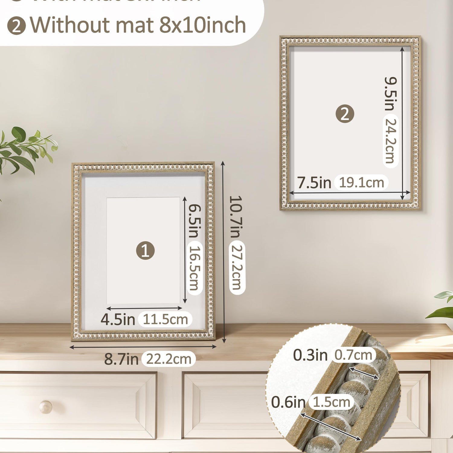 SUMGAR 8x10 Picture Frame Boho 5x7 Photo Frame with Mat Farmhouse White Wood Shabby Chic Wall Mounted Display for Birthday Wedding Friend Gifts with Distressed Decorative Pine Beads