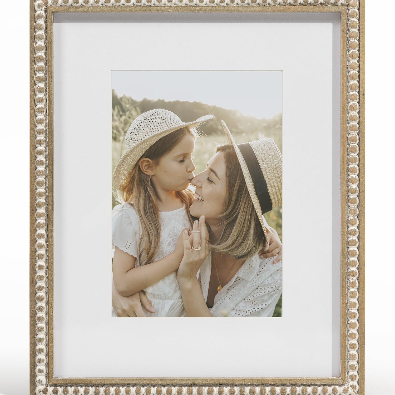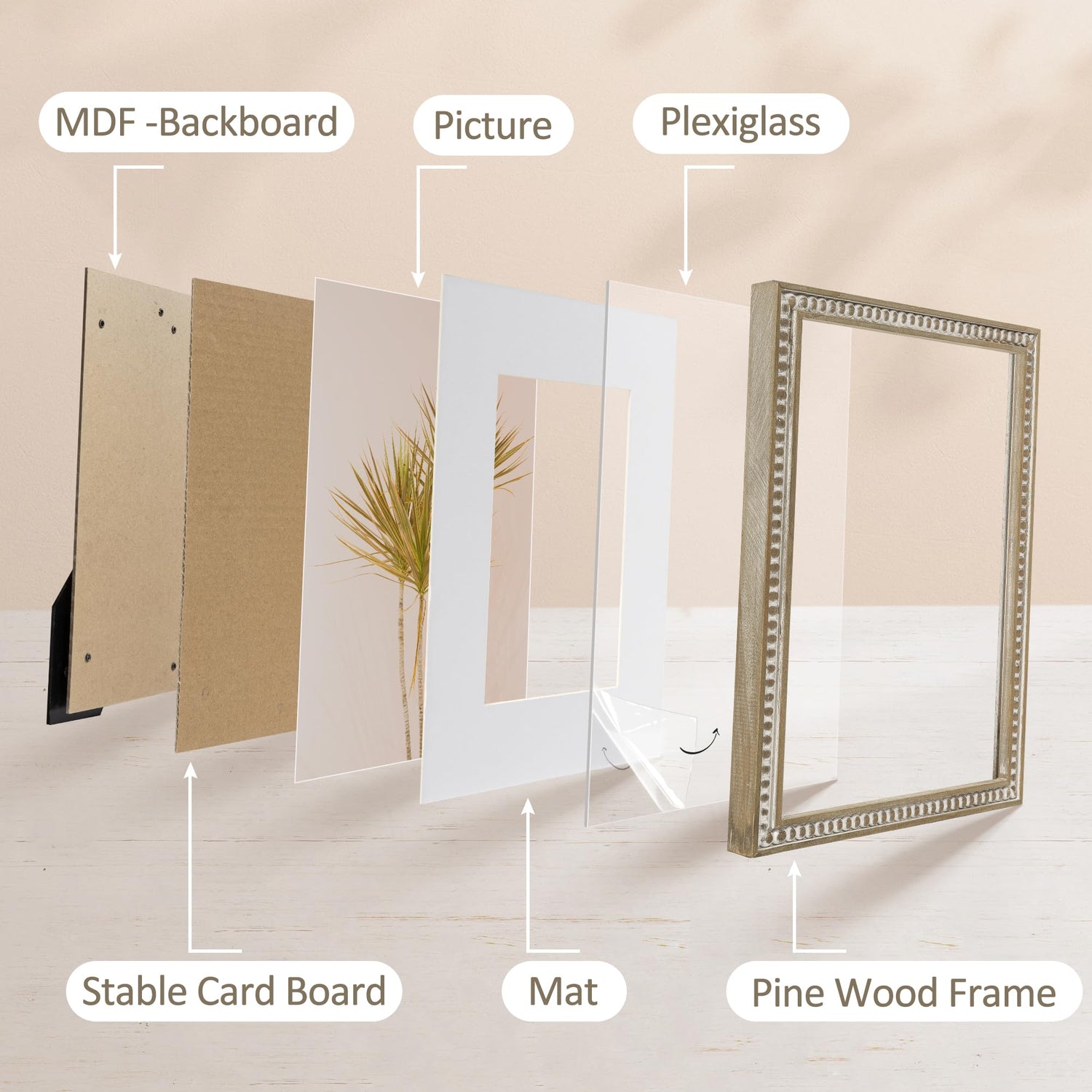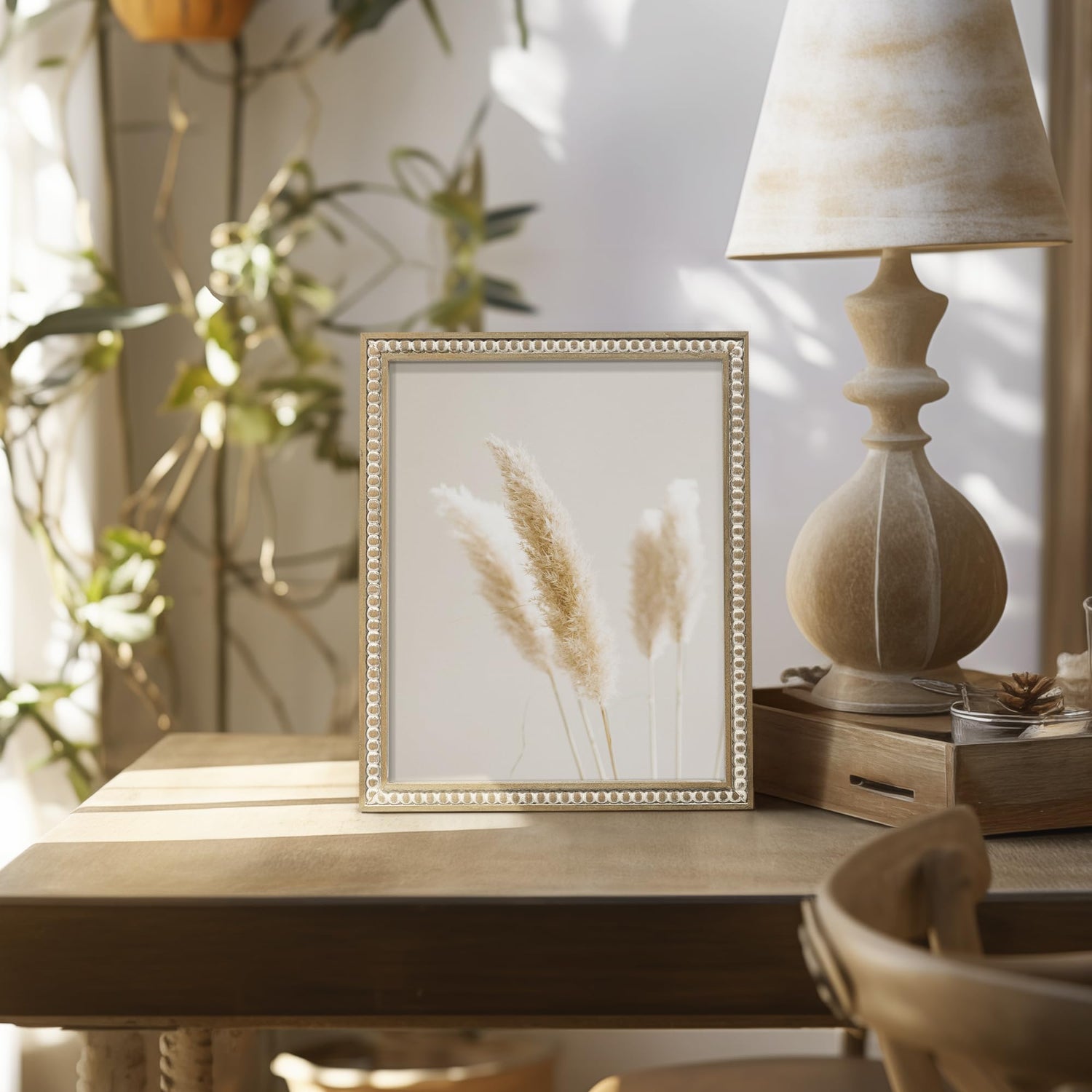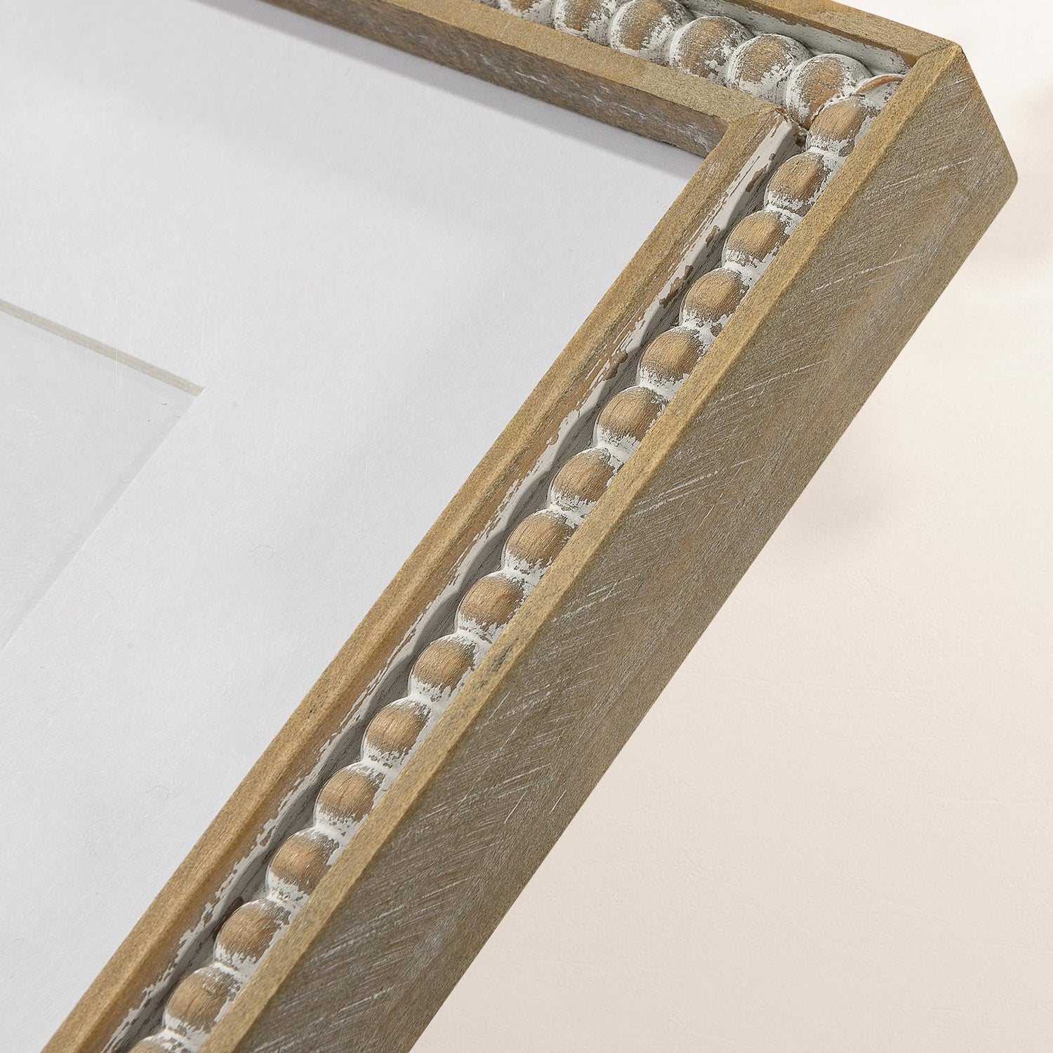 - πππ§π’ππ€πͺπ¨π π½π€ππ€ πΏππ¨πππ£ This 8x10 photo frame features white wooden bead intarsia, creating a distinctive look that merges the charm of farmhouse style with the eclectic flair of boho design, offering a unique decorative piece.