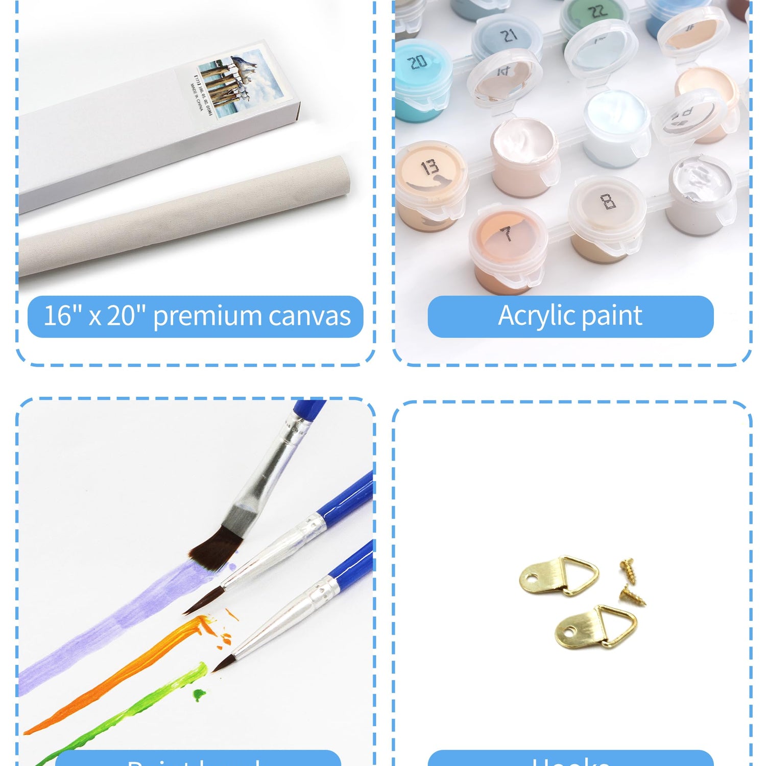 - 【Canvas Quality】Our acrylic paint set canvases comes pre-printed numbers with clear, feature pre-printed grayscale references, unlike most blank canvases. This helps you easily identify and select the right paint colors, making your painting experience smoother and more enjoyable.