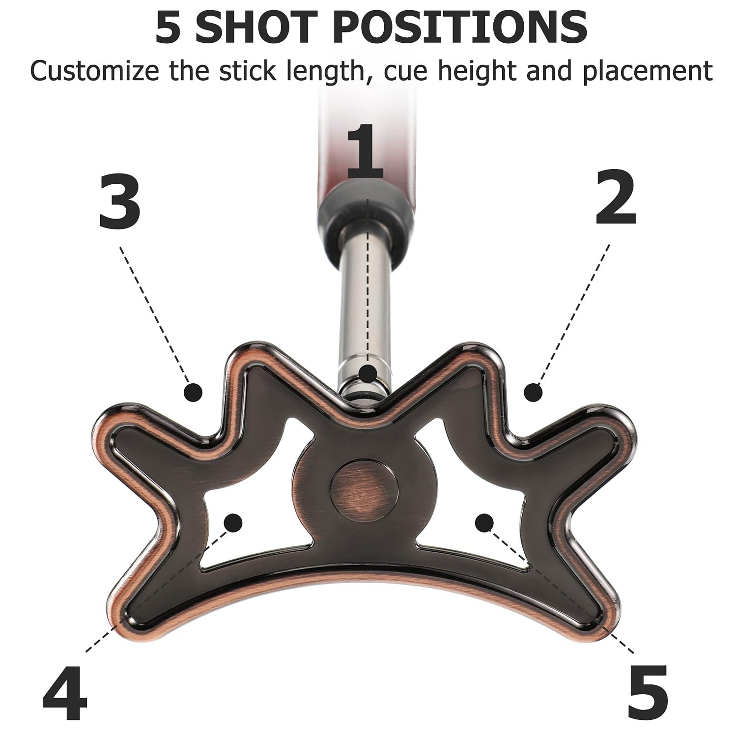 - Provides 5 shot positions: the bridge head of retractable bridge stick can offer 5 shooting positions, allowing you to adjust the stick length, cue height and placement by yourself, thus you can play a nice shot easily