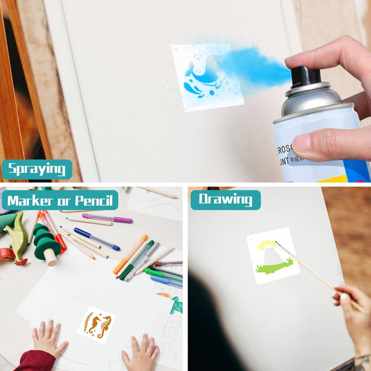 - Easy to Use & Clean: Attach these painting stencils to the surface you want to paint, whether it's flat or curved. Then, use watercolor pens, brushes, or spray paint etc. to draw. After use, clean with water