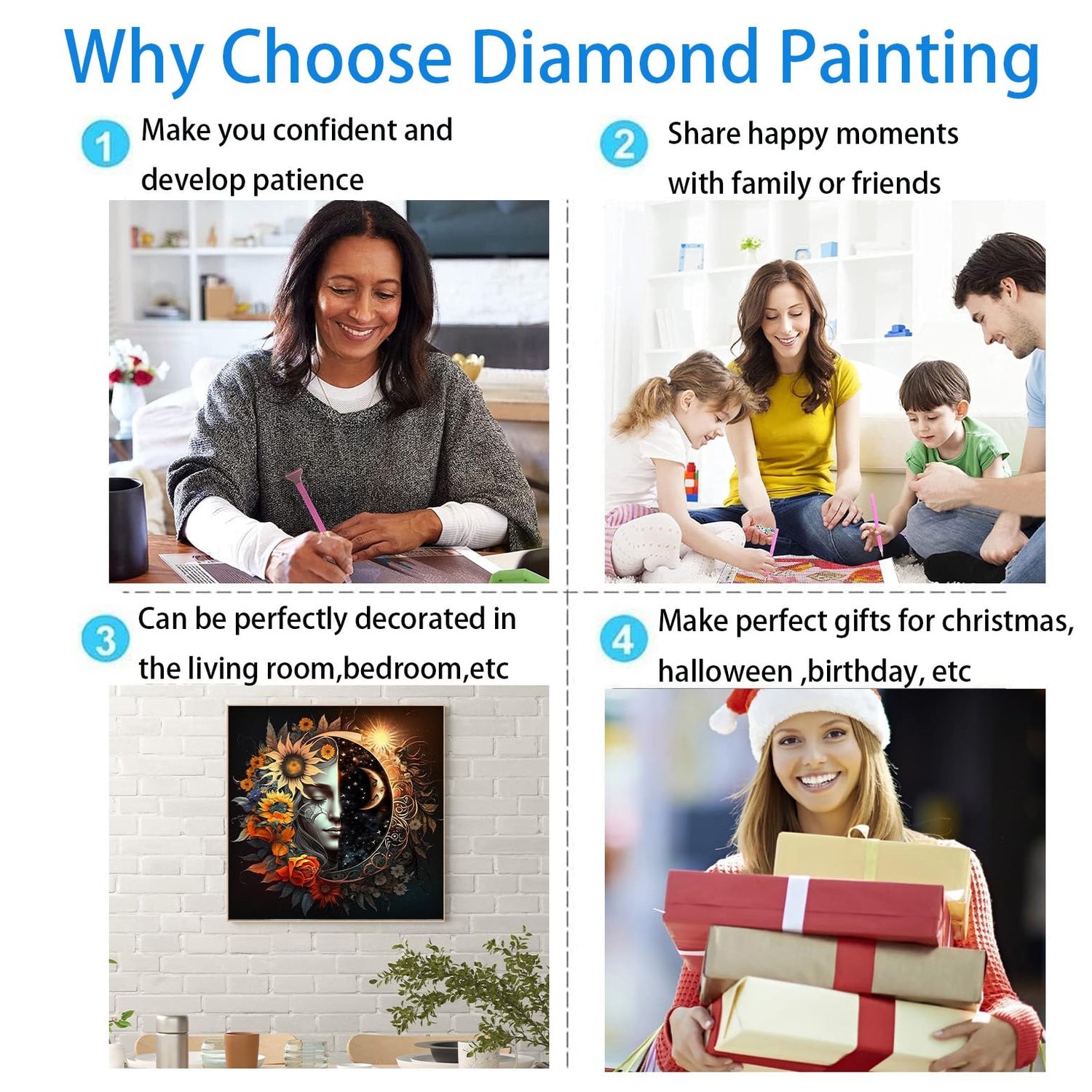 Sun and Moon Diamond Art Kits for Adults, Round Full Drill Diamond Painting Kits for Beginners Gem Art Painting Kits, DIY 5D Diamond Dots Painting with Diamond Arts and Crafts Wall Decor 14x14inch