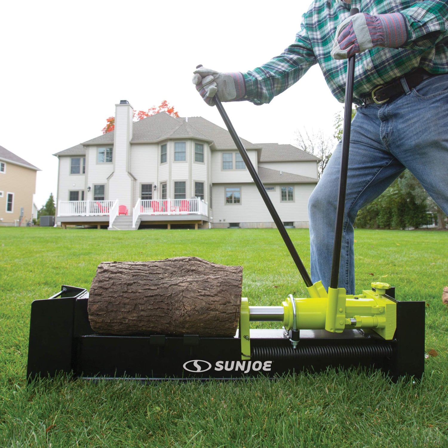Details: Log on. Log off. Then split. Embrace your inner Paul Bunyan as you make light work of the piles of large logs you've been meaning to tackle around your yd with the Sun Joe Logger Joe LJ10M 10-Ton hydraulic log splitter. Harness the power of the manually operated 2-speed pump to quickly generate to 10 Tons of driving force to easily split firewood logsup to 18 in. Long x 8 in. Wide. The LJ10M log splitter is crafted of durable steel construction for reliable power & performance, season after season, Year after year. Rear wheels make it easy to maneuver wherever it's needed - & its compact size makes it a cinch to store when it's not.
