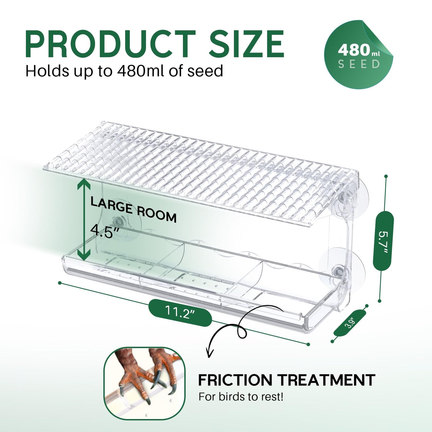 - Durable & Weatherproof: Our outdoor bird feeder equipped with 4 strong suction cups which can provide a stable hold even in extreme weather conditions. Install this bird feeder at a certain height (no need to worry about it falling), you can enjoy bird watching while deterring unwanted guests like rats and squirrels.