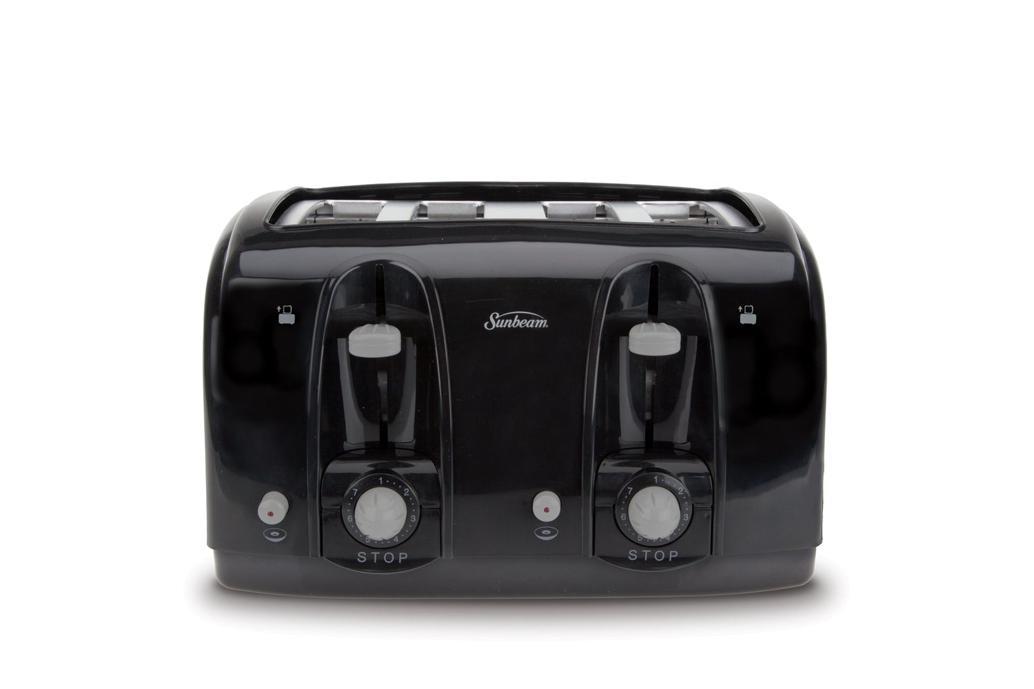 Details: Make toast just the way you like with the Sunbeam Wide Slot 4-Slice Toaster. This sleek black toaster features Electronic Toasting Technology that delivers consistent, even results and extra-wide slots that allow you to toast bagels, sliced bread, and all other types and sizes of breads. This bread toaster is equipped with turn knobs that offer seven toast shade options from light to dark as well as pre-programmed Bagel settings. Separate toast controls allow simultaneous toasting at different settings. An anti-jam feature automatically shuts your toaster off in case of a jam for safe, hassle-free operation, while a convenient cancel button allows you to stop the toasting process at any time. A toast-lift lever allows you to retrieve your food easily, and a removable crumb tray makes cleaning quick and easy. Built to North American Electrical Standards, the Sunbeam Wide Slot 4-Slice Toaster is backed by a one-year limited warranty.