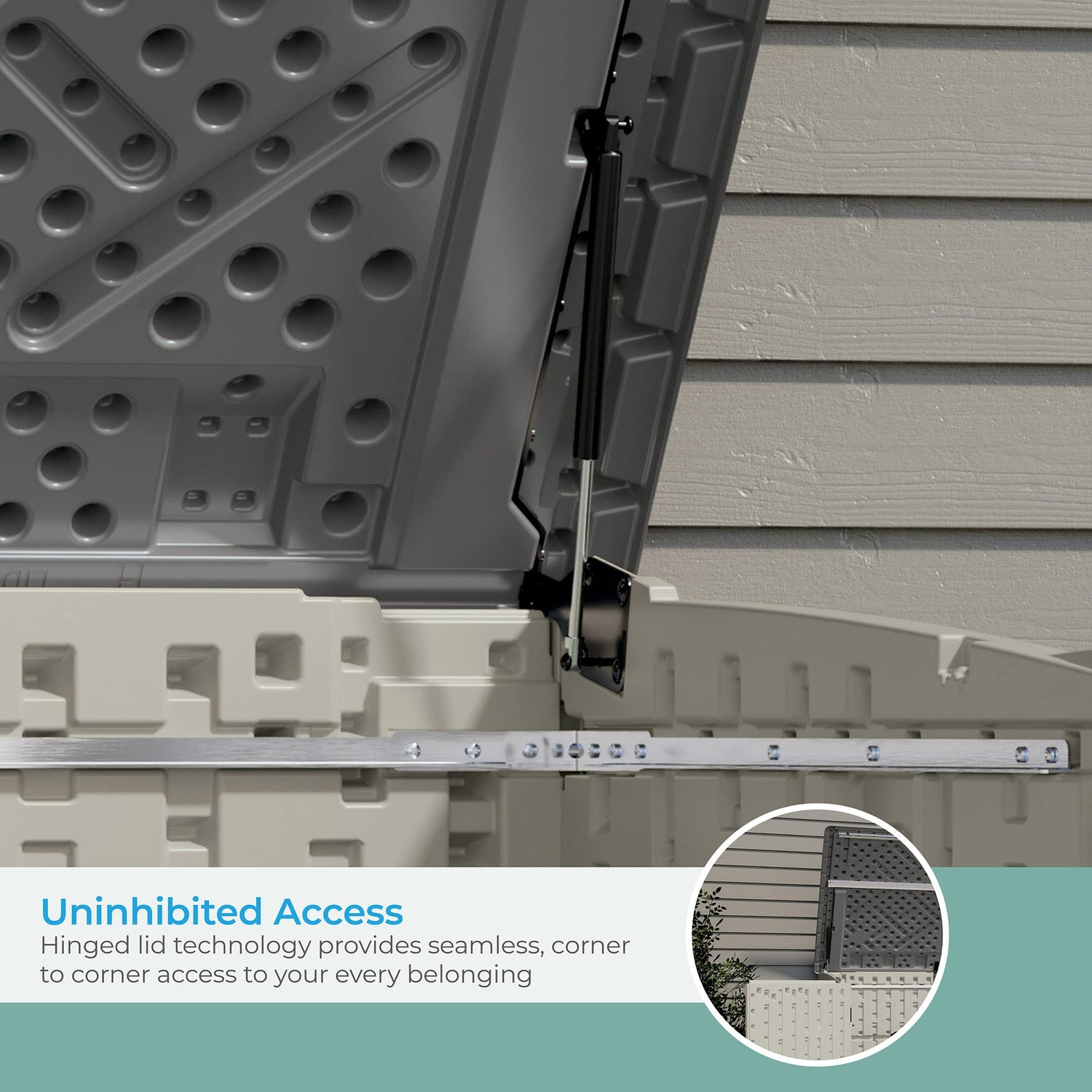 Suncast 5.9 ft. x 3.7 ft Horizontal Stow-Away Storage Shed - Natural Wood-like Outdoor Storage for Trash Cans and Yard Tools - All-Weather Resin, Hinged Lid, Reinforced Floor - Vanilla and Stoney