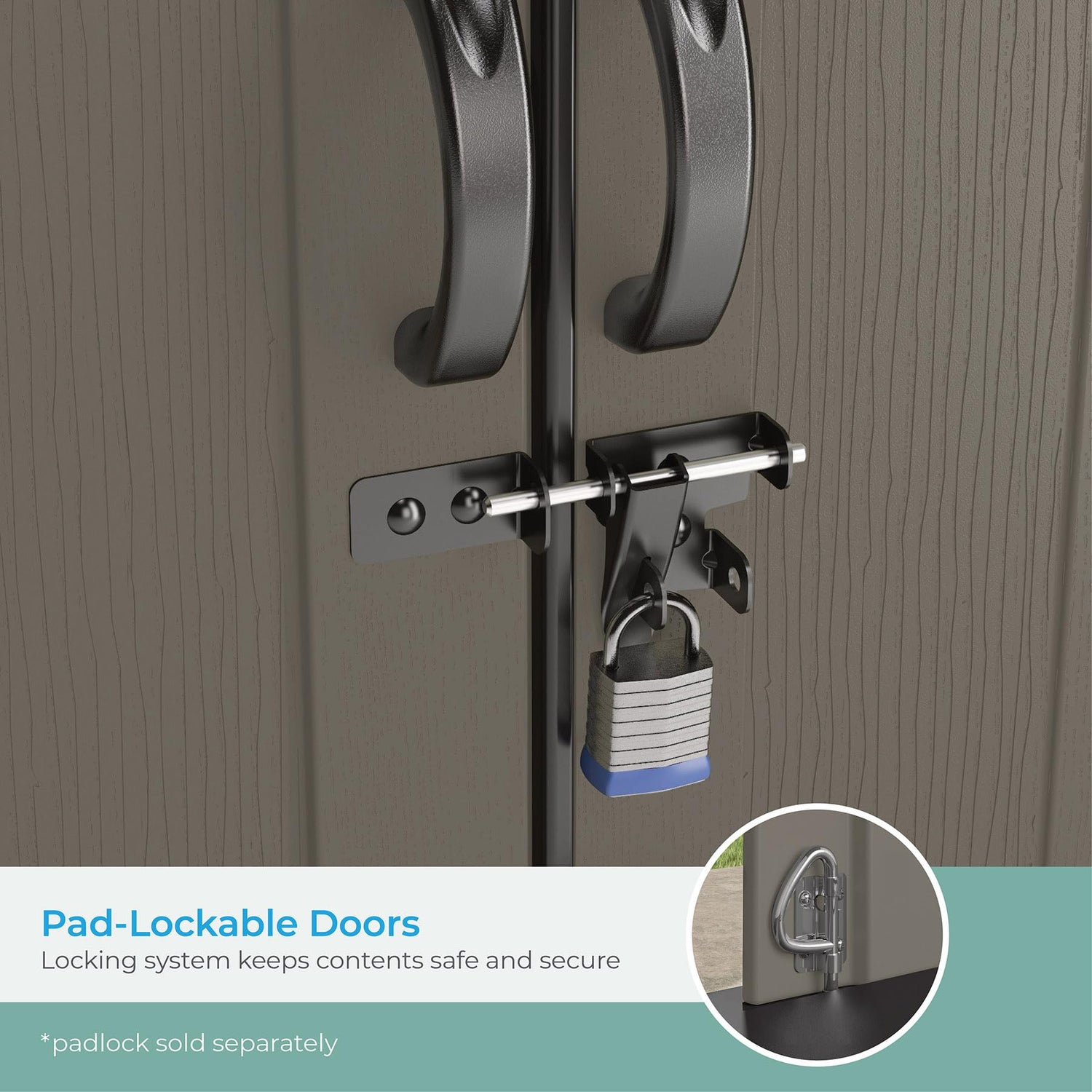 - LOCKABLE DOORS: Padlock hasp allows doors to lock and protect valuables