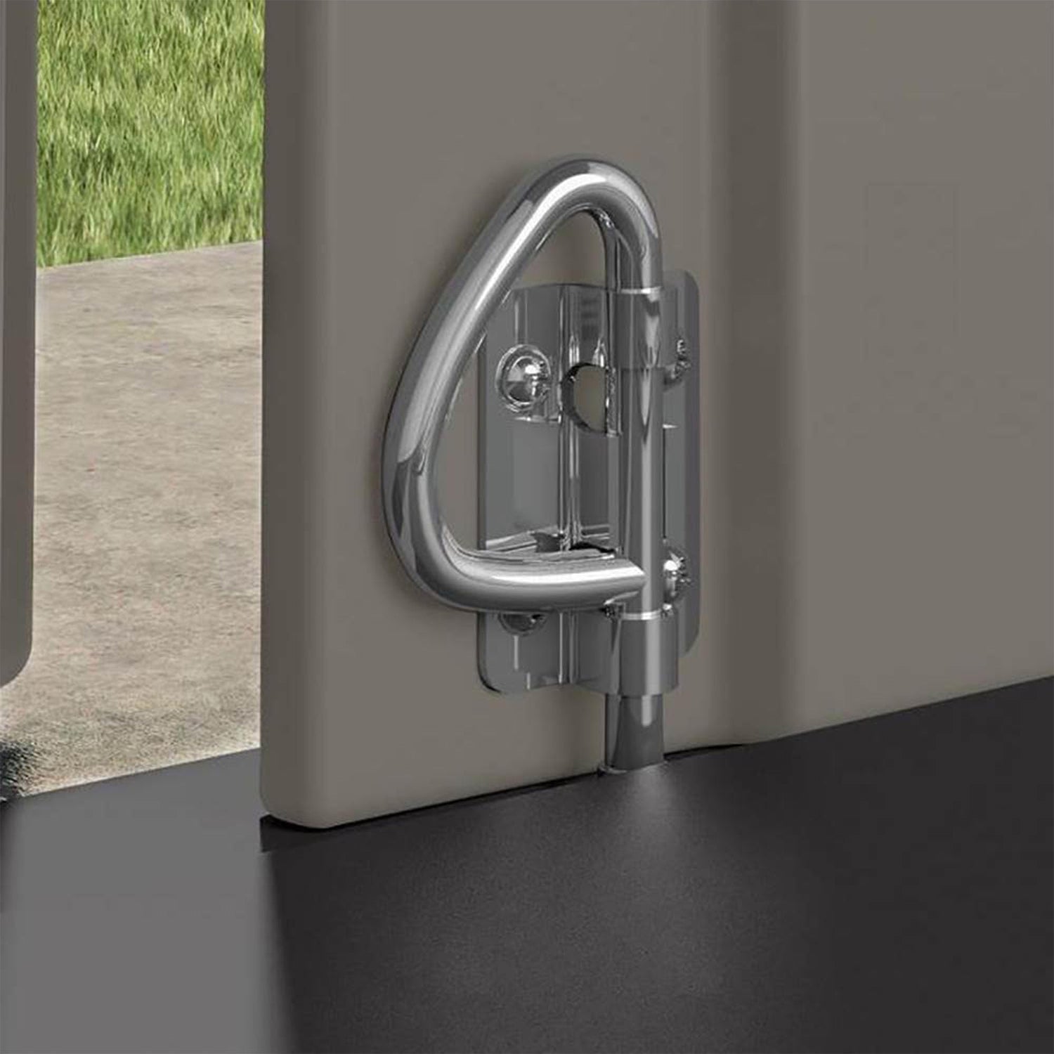 - PAD-LOCKABLE DOORS: Doors feature pad-lockable handles to prevent theft and unauthorized use (lock not included), and the upper and lower metal latches keep the doors closed and in place