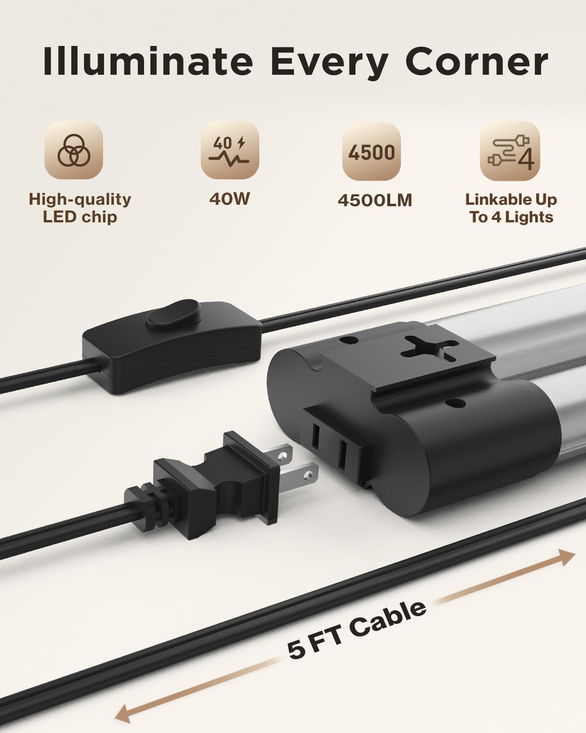 - ✅ LINKABLE - Easily daisy chain the LED shop light to create an extendable design. Seamlessly connect up to 4 LED shop lights together with connectors for energy savings in your home, office, or workspace.