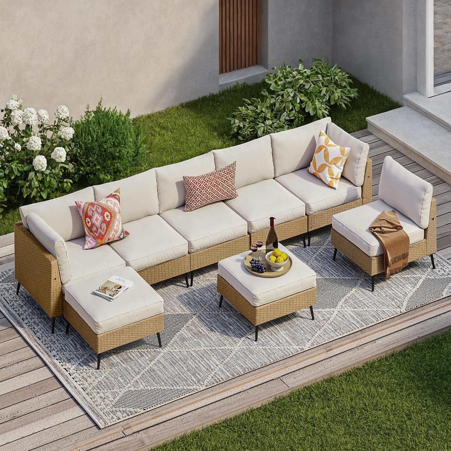 - 🌞MODULAR AND VERSATILE CONFIGURATION - SUNCOZE patio sectional furniture set features a modular design, this outdoor couch can be freely rearranged and combined to fit various occasions and spaces. The patio sofa set comes with enough comfortable room for 6-8 family members and friends. This boho outdoor furniture will transform any outdoor and indoor space into a leisure and stylish hangout. Perfect for backyard, garden, deck, pool and more