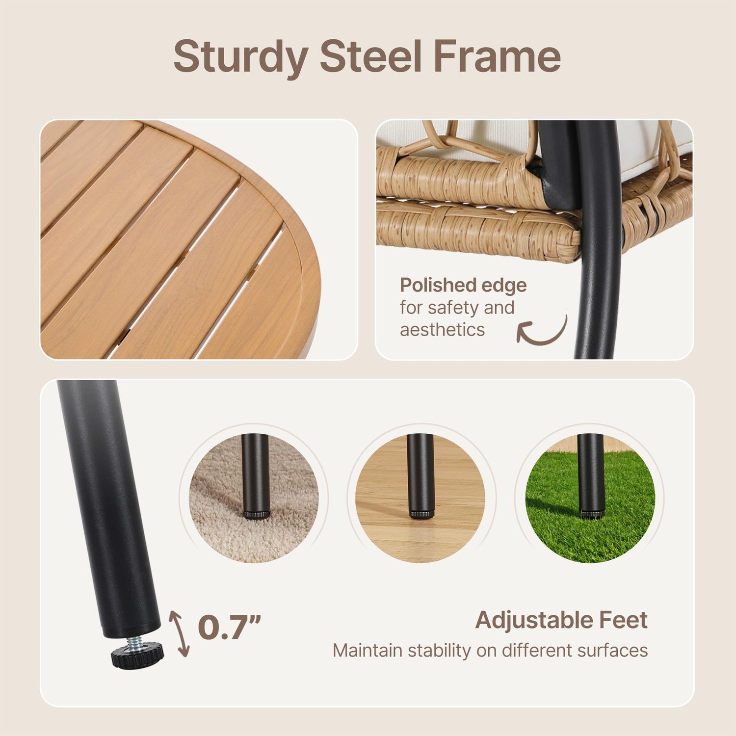 - ALL-WEATHER PATIO SET: This 5pcs patio table and chairs set is crafted with premium handwoven rattan, combining elegance with durability to thrive in any weather. The **round table** is thoughtfully designed with a umbrella hole, allowing you to easily add shade for sunny days. Unlike standard round table and chairs set of 4, our table is spaciously sized, offering more room for gatherings and making it perfect for entertaining friends and family.