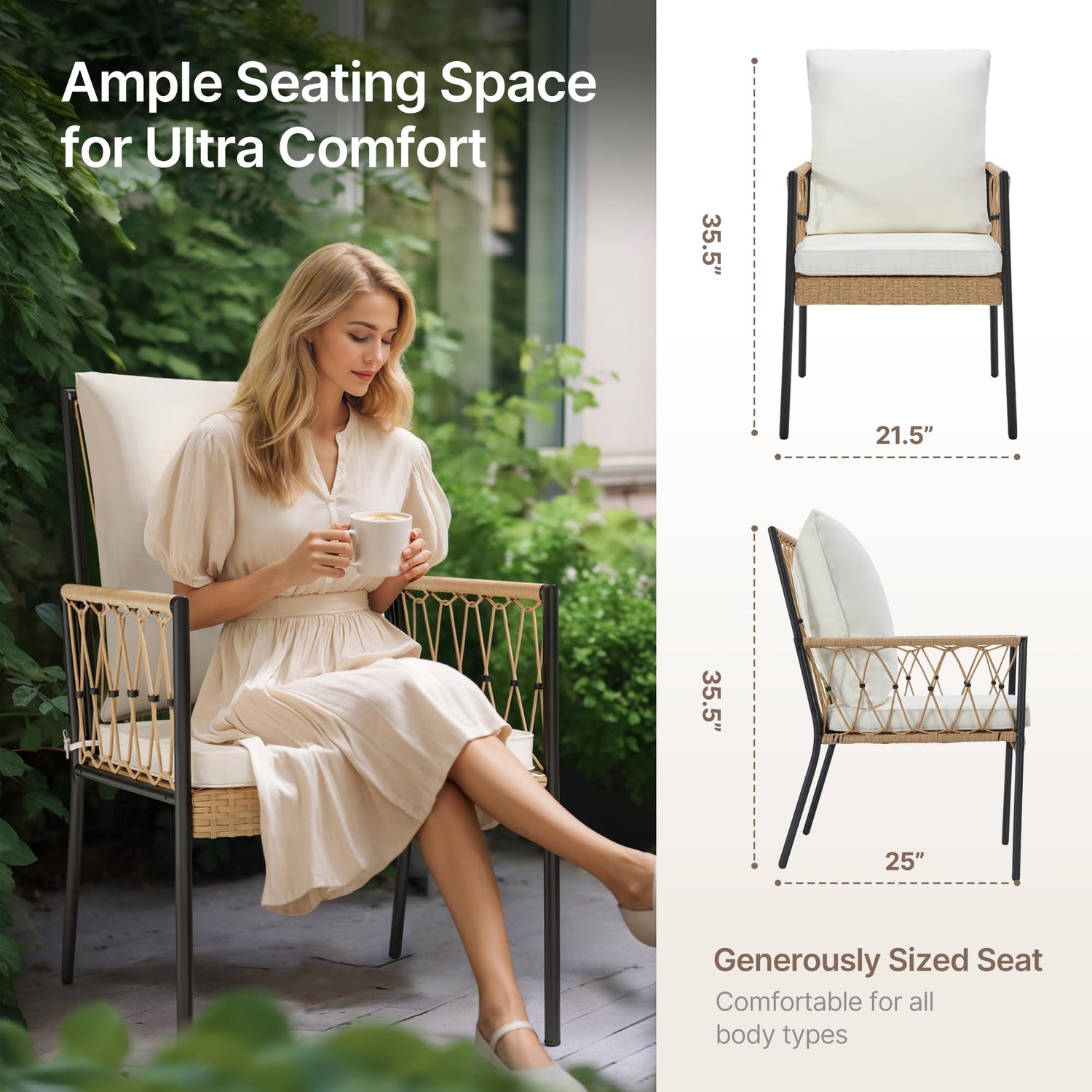 - PATIO DINING SET FOR 4: Experience modern elegance and cozy comfort with our 5-piece outdoor dining set. Our SUNCOZE patio furniture set includes seat and back cushions, offering a soft and inviting feel. The seat cushions feature convenient tie straps to prevent slipping, ensuring a secure fit. With a focus on relaxation, the cushions are thick, breathable, and easy to clean, thanks to removable covers