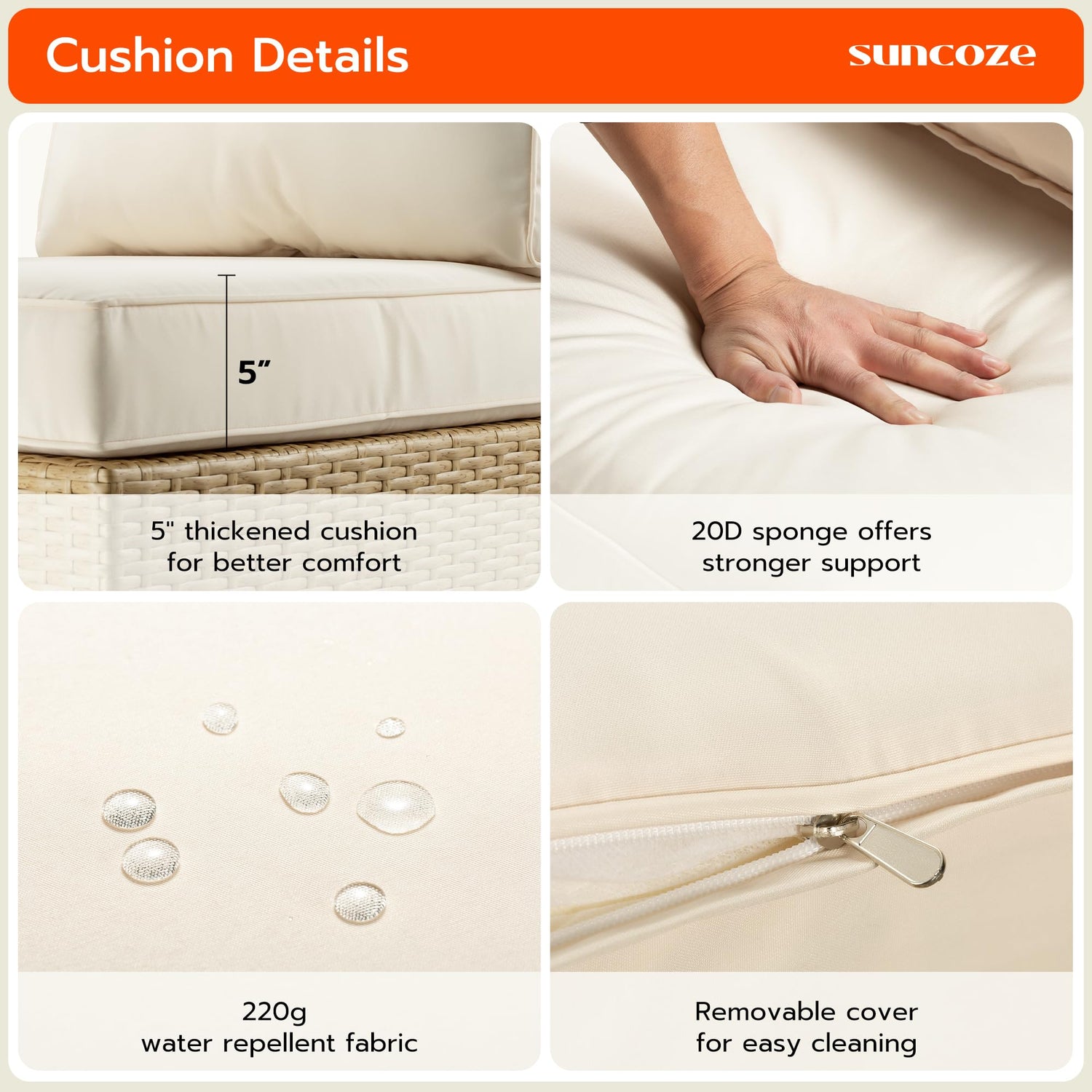 - 🌞PACKAGE AND WARRANTY - The patio couch set comes with 6 boxes and you may not get all boxes at the same time. We recommend assembling sofas after receiving all boxes. SUNCOZE patio furniture set is covered by a 1-year manufacturer quality warranty. Don't hesitate to chat us if have any issues about product, shipping, assembly or quality.