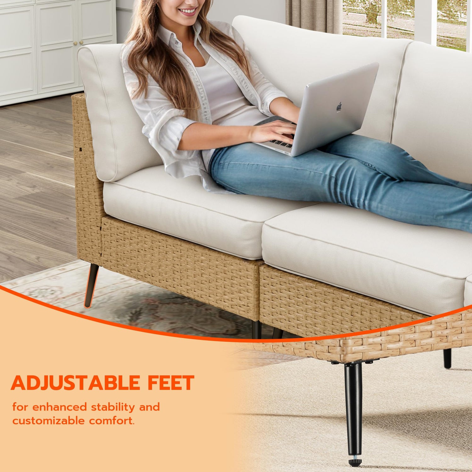 - 🌞EASY ASSEMBLY - The outdoor sectional furniture includes 4 armless sofas, 4 corner sofas and 4 ottomans. All necessary hardware, tools and manual are included, which is easy to assemble. The special sofa connection design and adjustable feet also make it more stable and balanced.