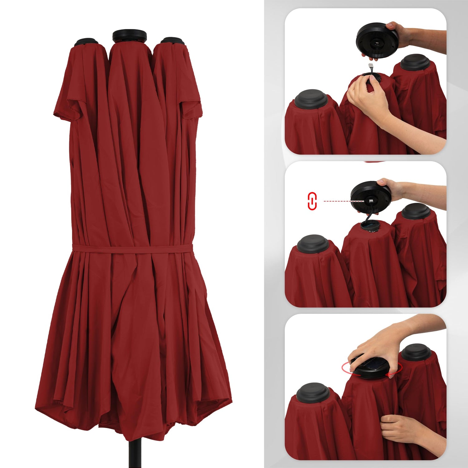Sundale Outdoor 40LED 15ft Large Patio Umbrellas with Base Included and Umbrella Cover, Outdoor Double-Sided Umbrella with Solar Lights Red
