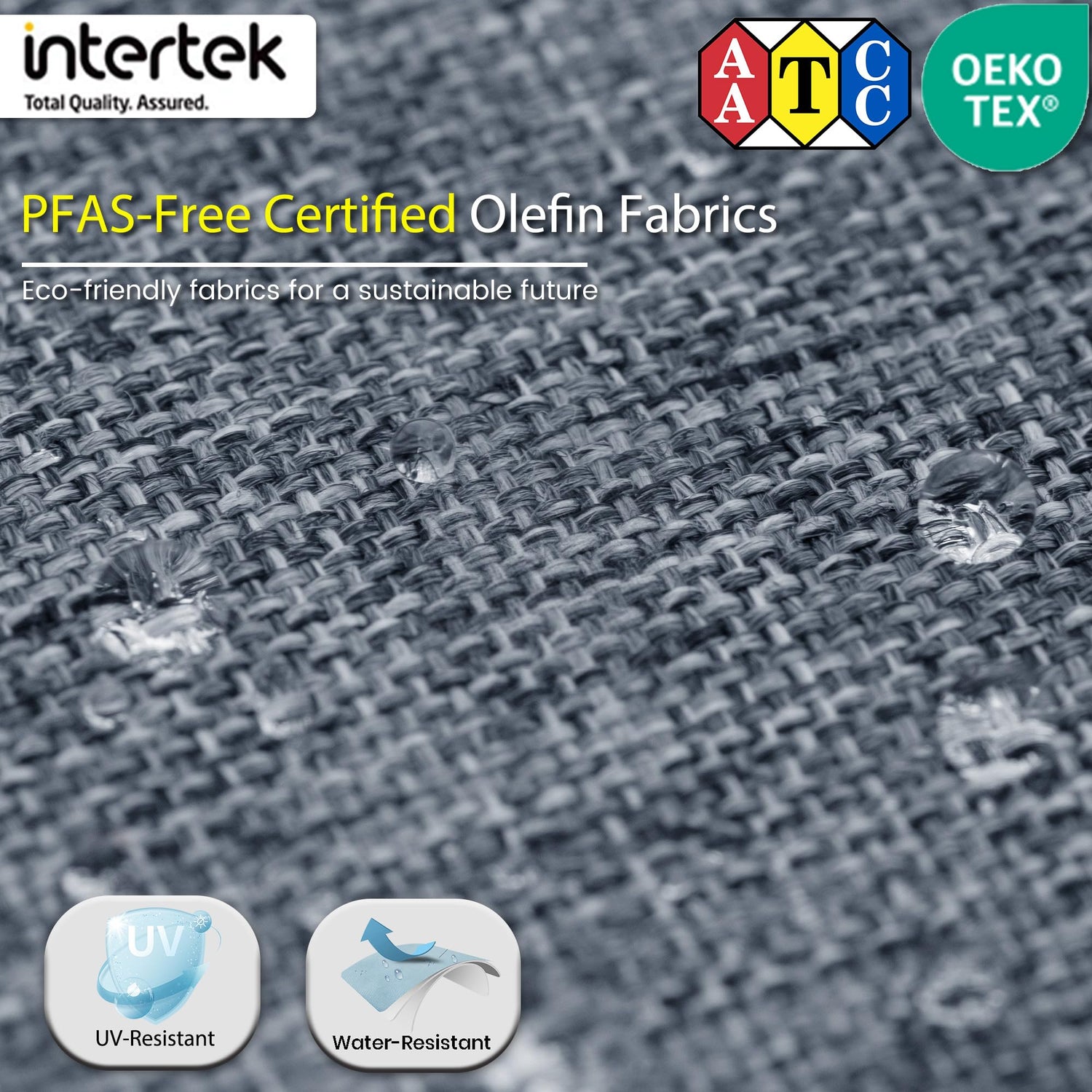 - Innovative Renewable Fabric: Crafted from eco-friendly Olefin, these cushions feature Intertek-Certified PFAS-Free fabric, ensuring UV resistance and no harmful per- and polyfluoroalkyl substances. Enjoy a comfortable, environmentally safe seating experience without compromise