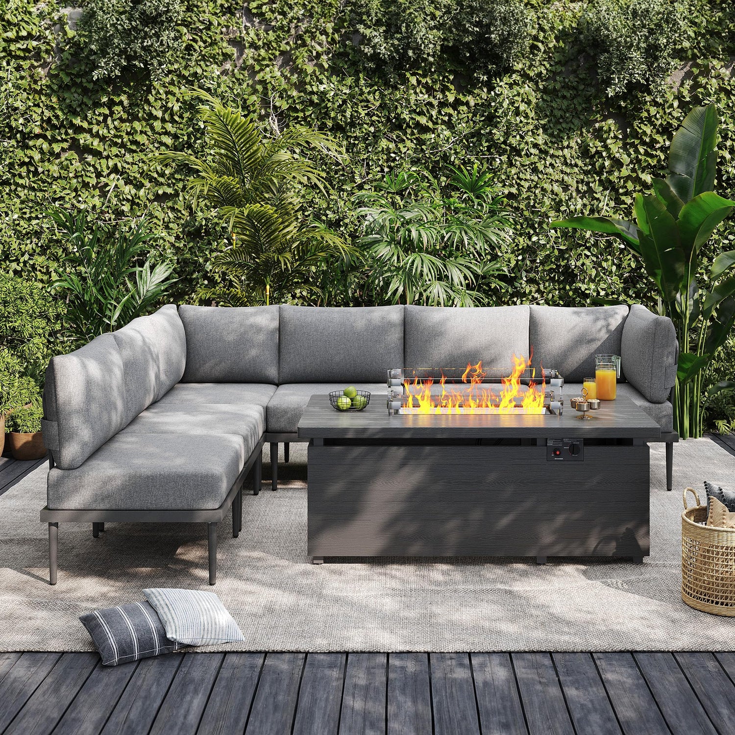 Sundale Outdoor 7 Pieces Metal Patio Furniture Set with Fire Pit Table, Outdoor Sectional Sofa w/6 Inch Olefin Cushion, Modern Outdoor Conversation Sets