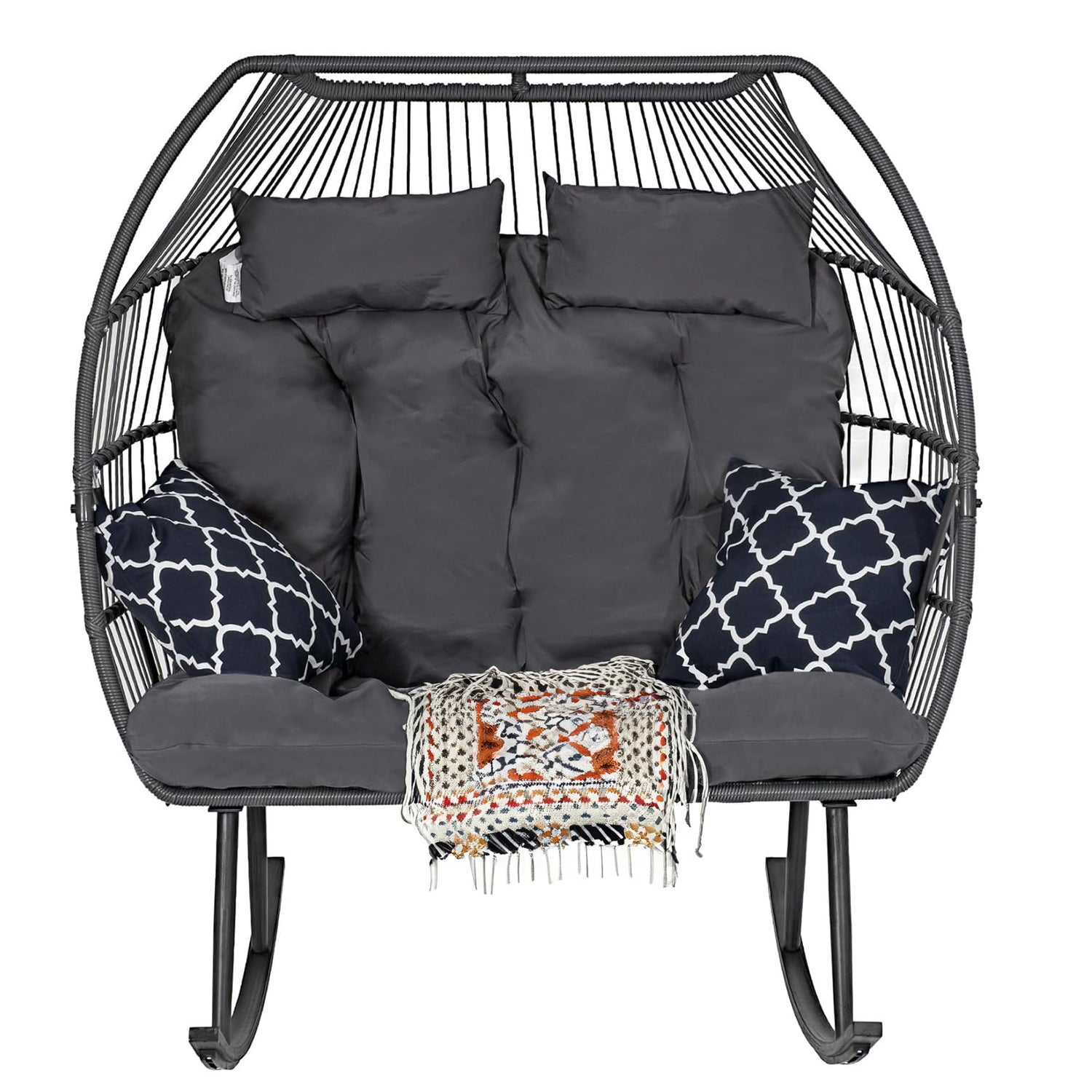 Sundale Outdoor Egg Chair, Rocking Double Egg Chair Outdoor Indoor, 2 Person Egg Loveseat Chair for Patio Balcony Porch Backyard (Grey)