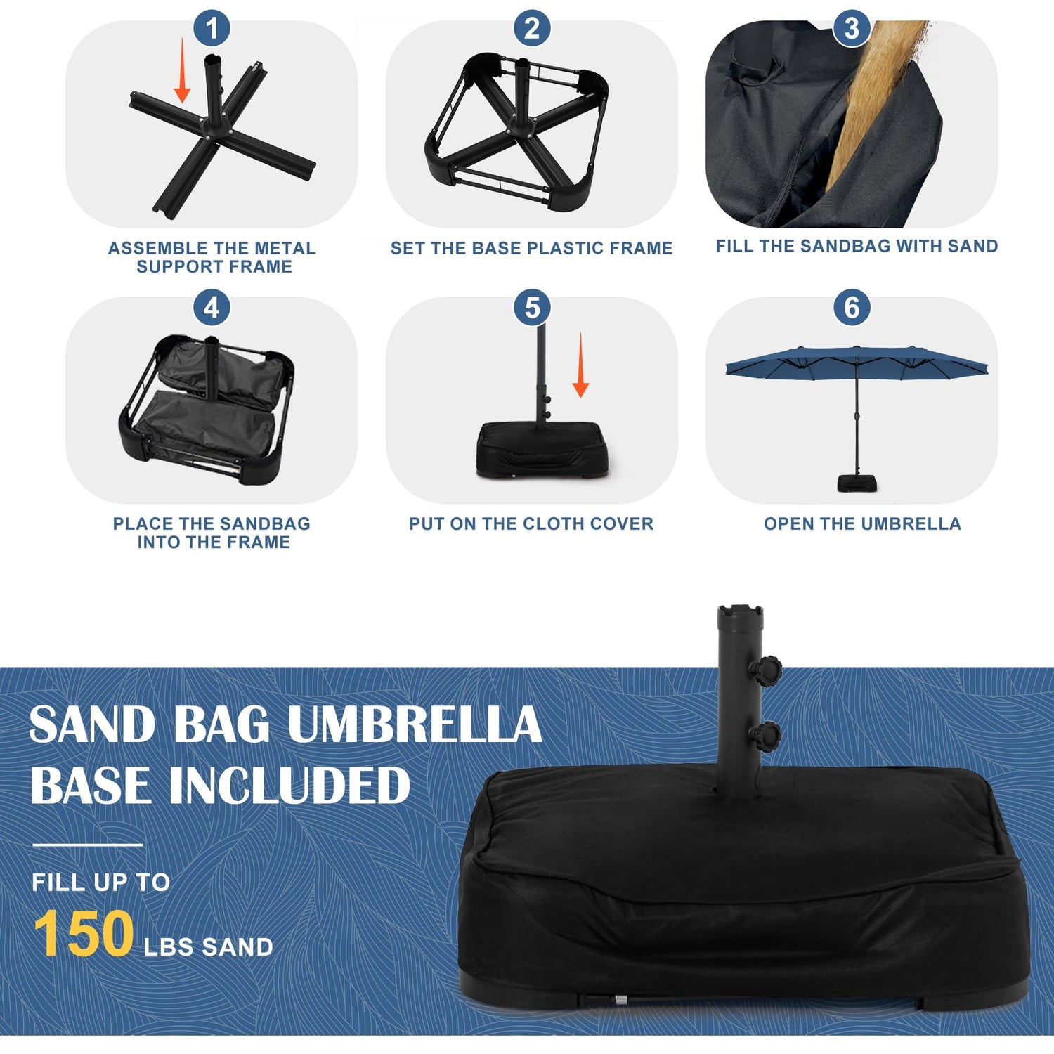 • Umbrella Base are Included: Our patio umbrellas include a large sandbag base, so you don't need to buy another umbrella base. Please fill with sand or stone when using to maintain the stability of the umbrella