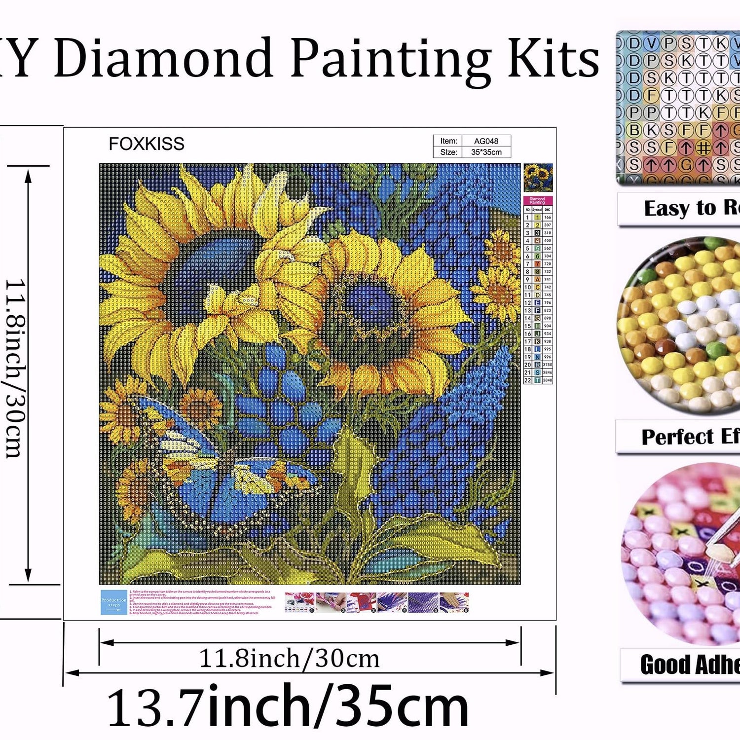 Sunflower Diamond Art Painting Kits for Adults, Stained Glass Full Drill Diamond Dots Paintings for Beginners, Round 5D Paint with Diamonds Pictures Gem Art Painting Kits DIY Crafts Kits 14x14inch