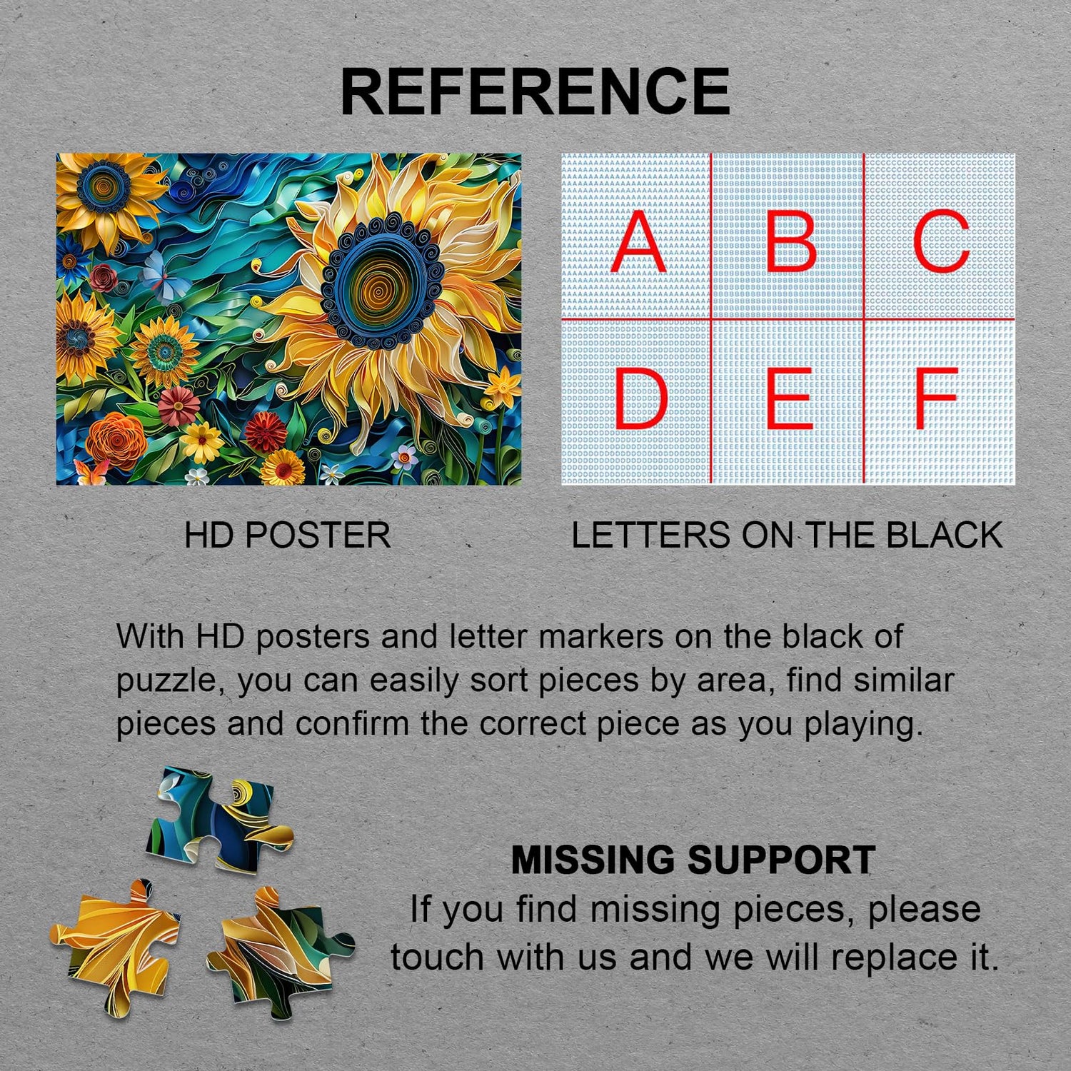 - A Burst of Nature's Beauty: Immerse yourself in the vibrant and colorful world of our sunflower puzzle. This puzzles for adults 1000 pieces captures the essence of a lively garden, bringing the joy and warmth of nature into your home