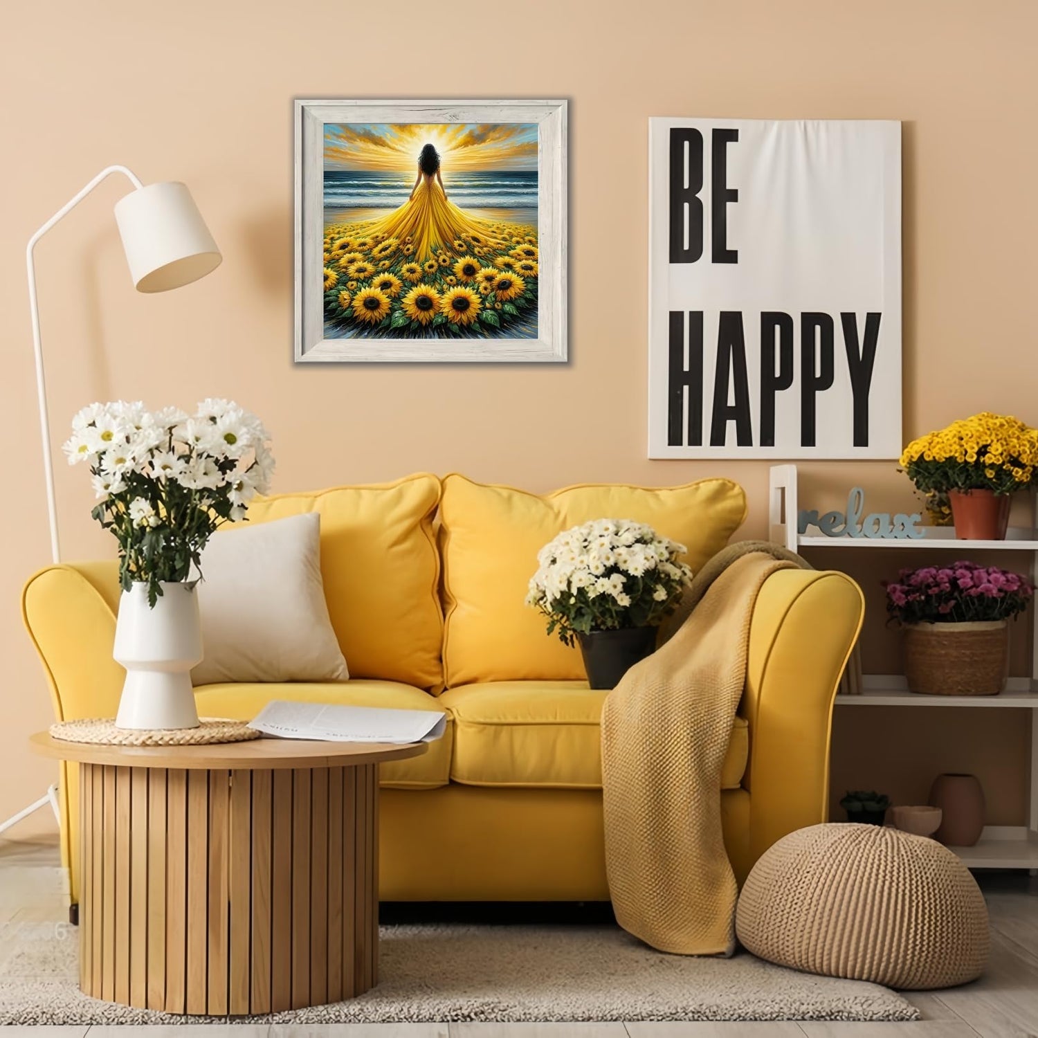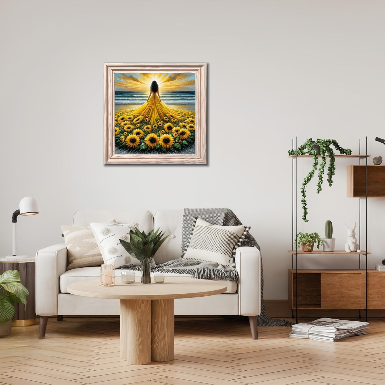 Sunflower Skirt Woman 5D Diamond Art Kits for Adults Beginners,Seaside DIY Full Round Drill Diamond Painting Kits, Paint by Diamonds Dots Gem Art Crystal Easy,Home Wall Decor 14X14 Inch