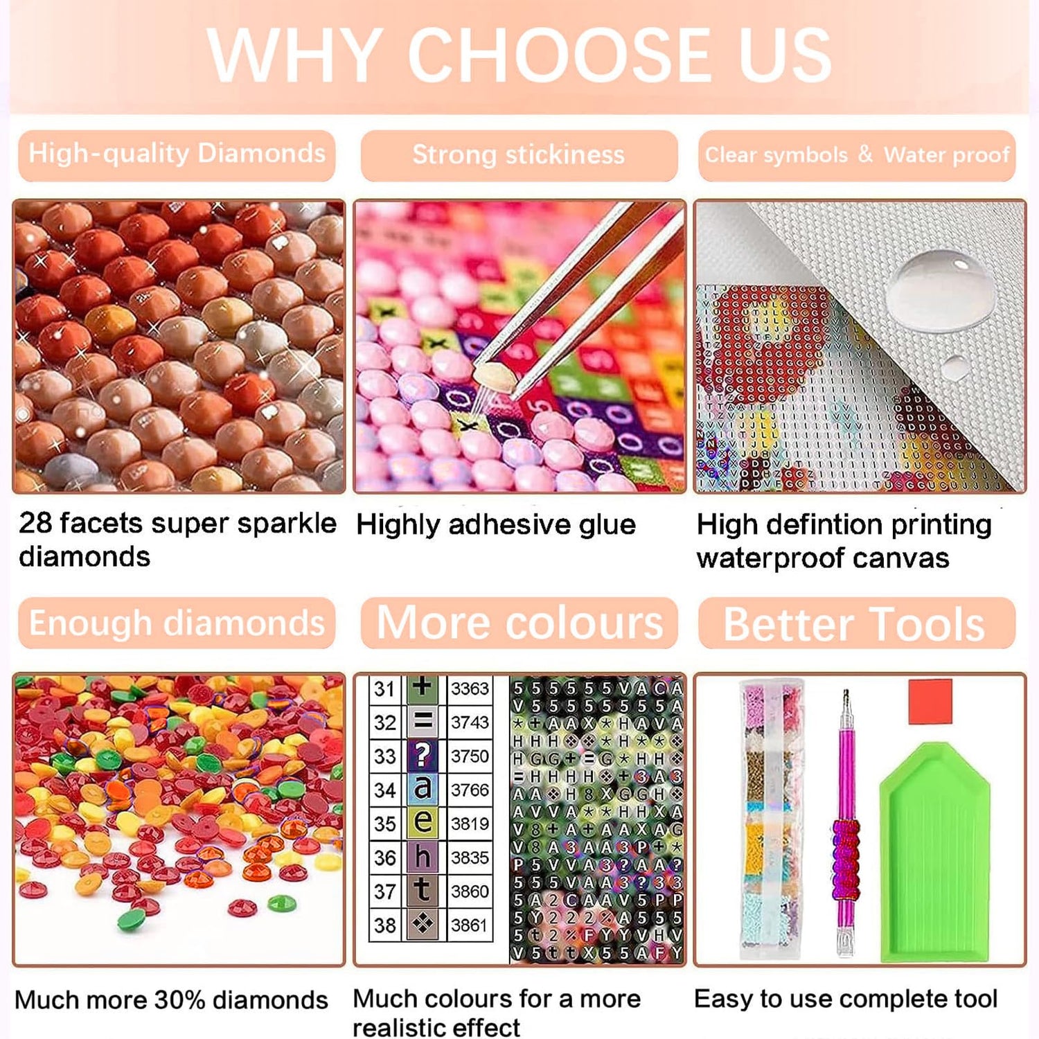 - High Quality Diamond Painting Kits:Our gem art kit has high clear printing canvas and bright colors,the pattern is covered with strong glue as a whole to make the diamond less likely to fall off.In addition,we added an additional 30% of diamonds