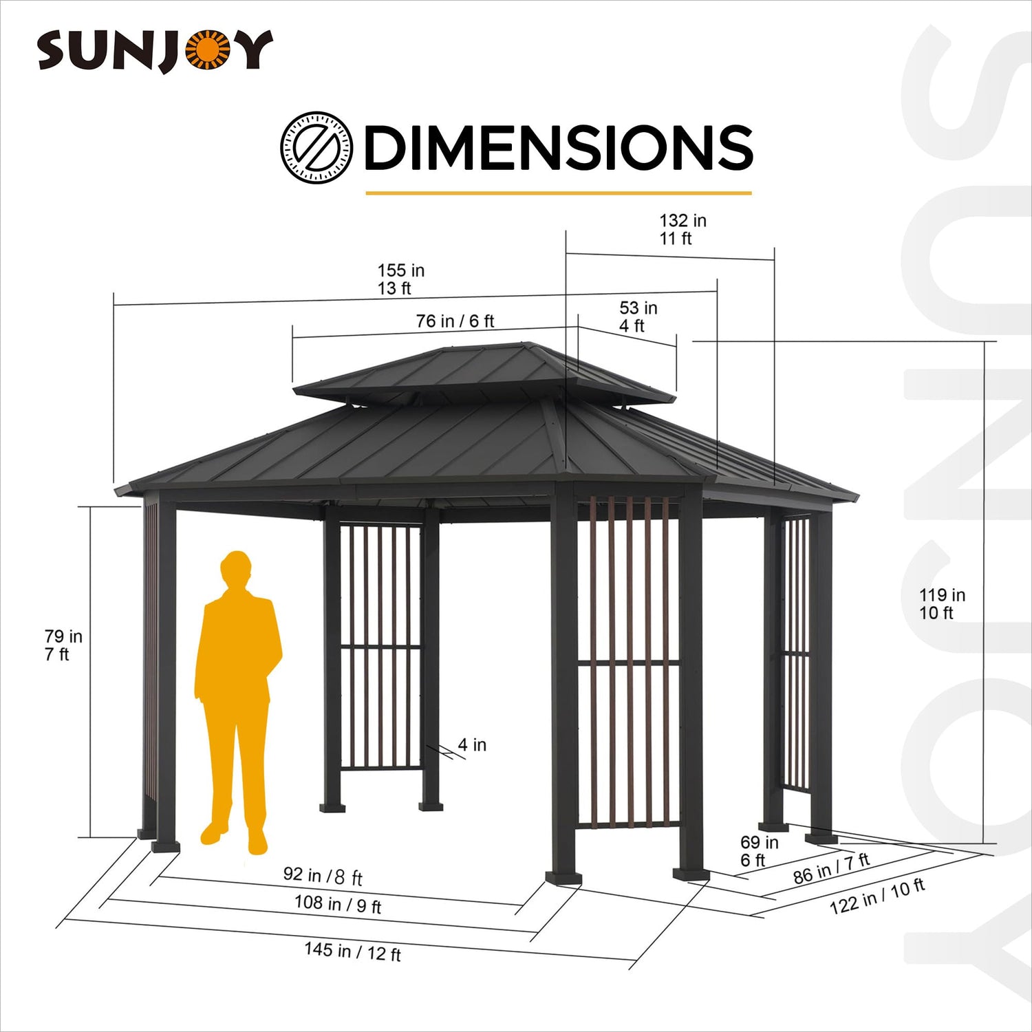 - 【Multiple Scenery Application】- Size:154.9in. L x 132.1in. W x 118.9in. H, Weight: 489.43 lbs. This 2-Tier roof gazebo is a perfect addition to various outdoor living spaces, such as patios, decks, backyards, lawns, etc.