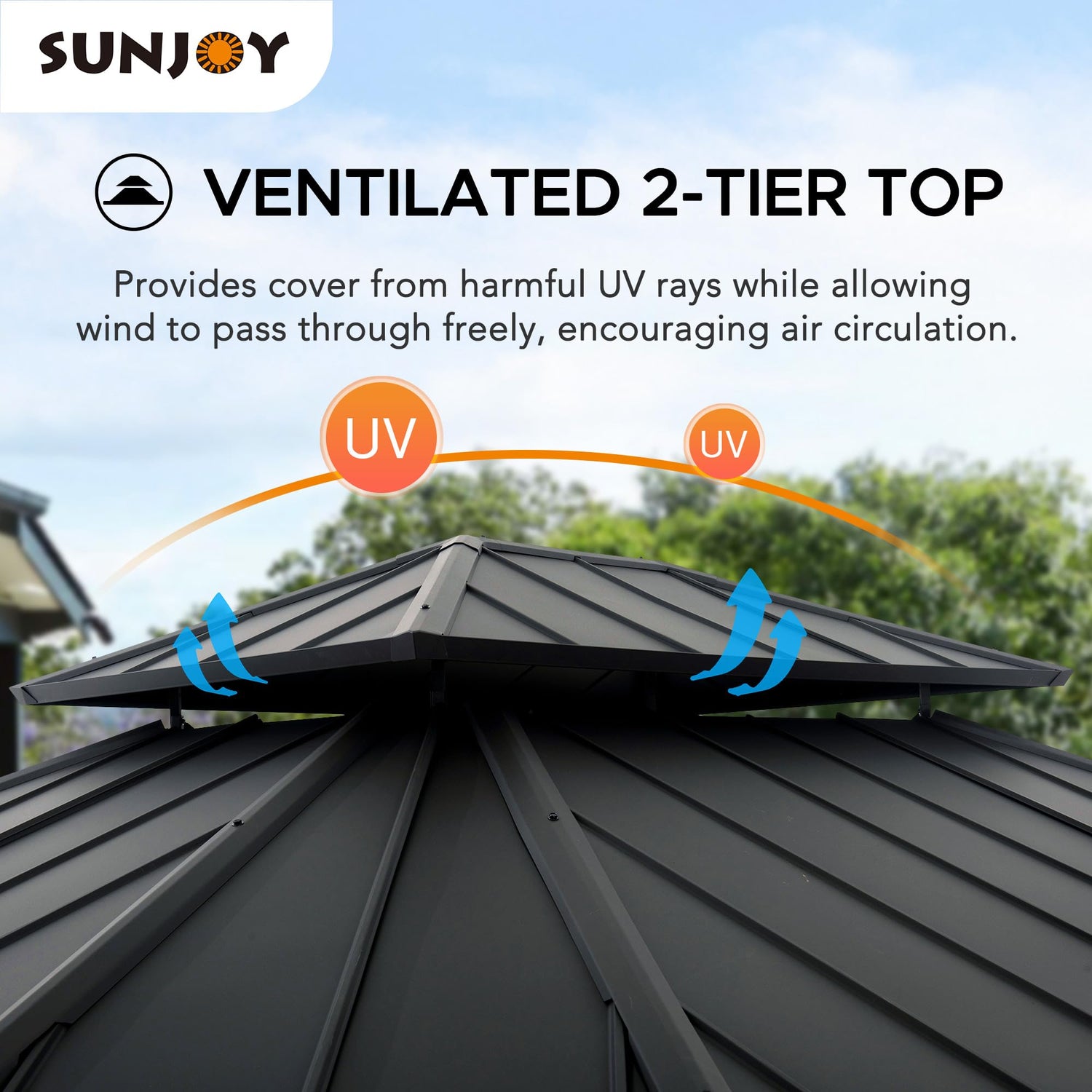 Sunjoy 11 x 13 ft. Hardtop Gazebo Outdoor 2-Tier Steel Hardtop Metal Gazebo with Dual Rails and Ceiling Hook, Suitable for Patio & Backyard by SummerCove, Grey