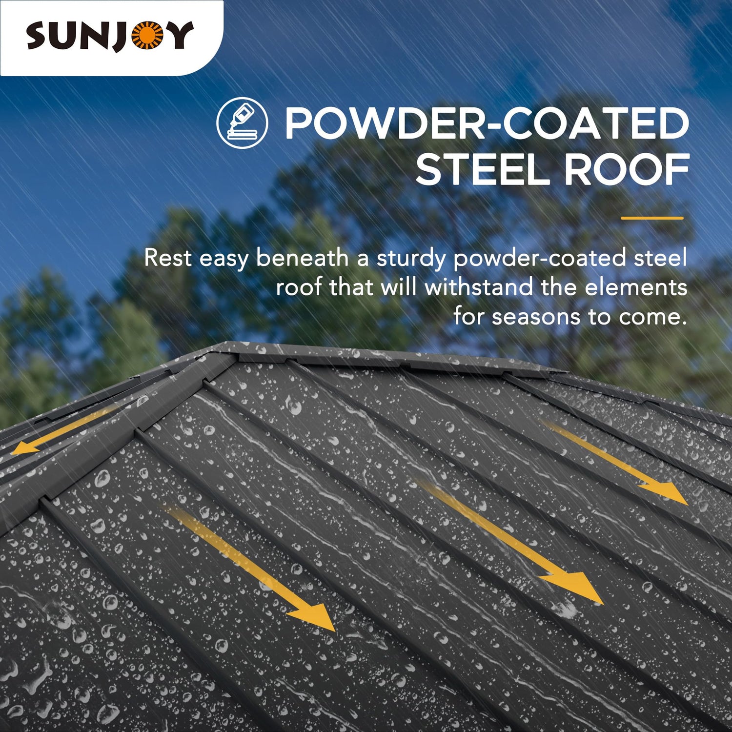 - 【Sturdy Protection, Stability, & Striking Design】- Durable black rust-resistant powder-coated steel roof and frame provides shade from the heat and keep the water out. Premium cedar wood frame and natural cedar frame components exude a contemporary aesthetic.