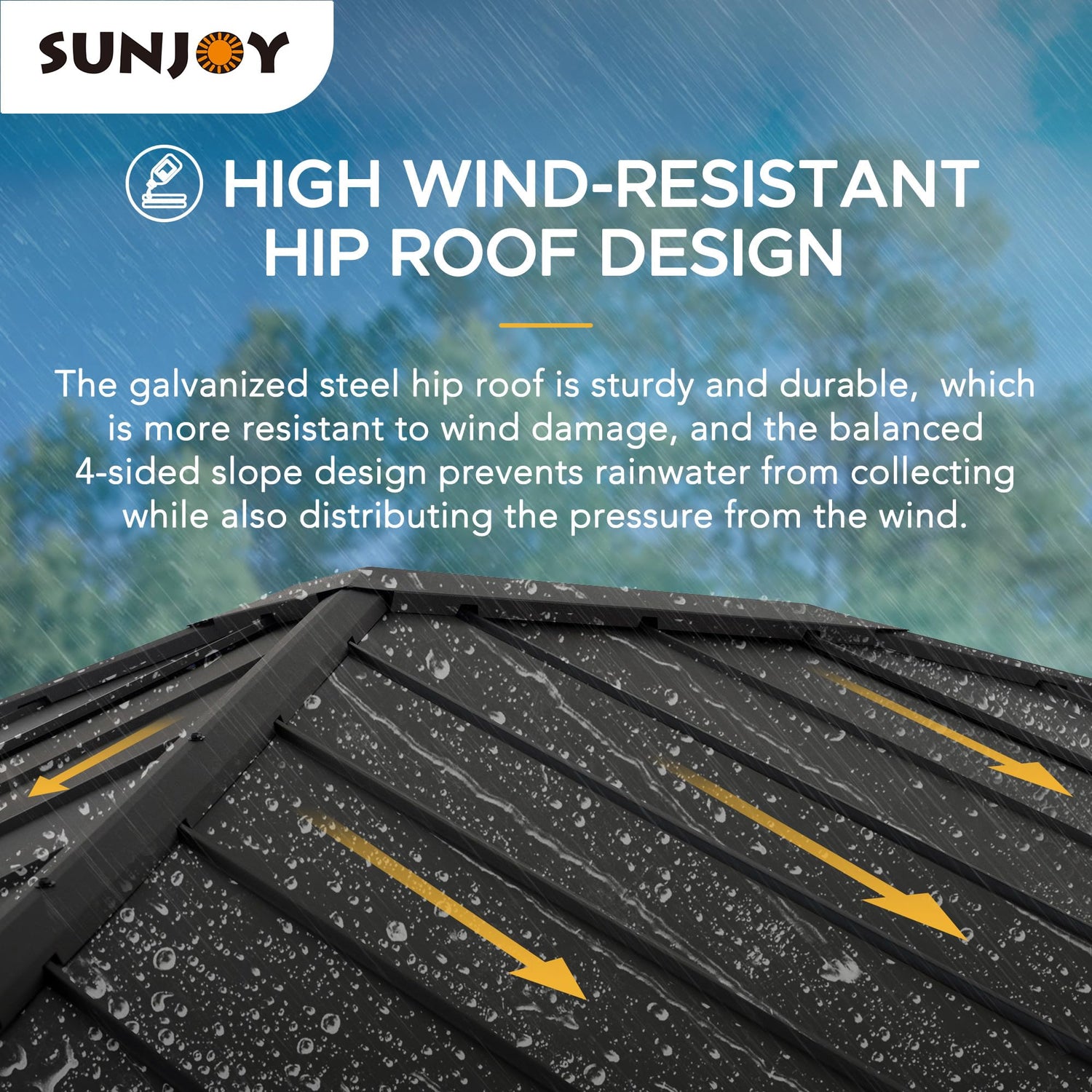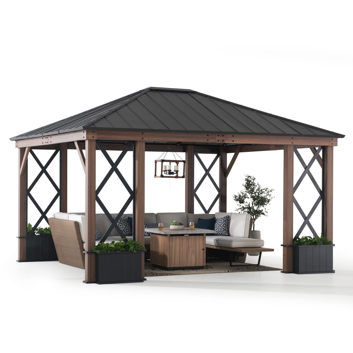 Sunjoy 13 ft. x 15 ft. Hardtop Gazebo, Outdoor Black Steel Roof Gazebo Aluminum Framed Gazebo with Planters and Ceiling Hook for Patio, Garden, and Backyard Activities by SummerCove