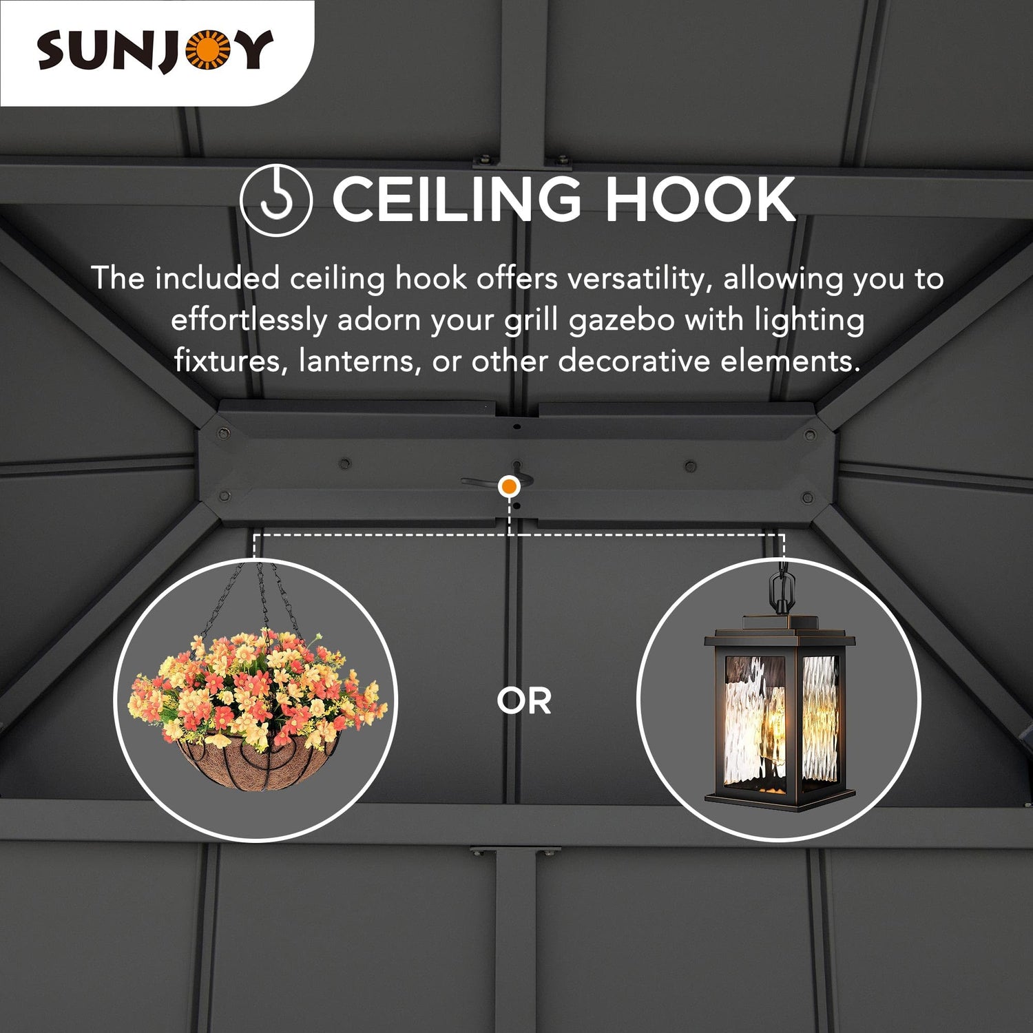 - 【Versatile Decor Options】- With the included ceiling hook, you have the freedom to effortlessly hang lighting fixtures, lanterns, or decorative elements, instantly elevating the ambiance of your outdoor gatherings and events.