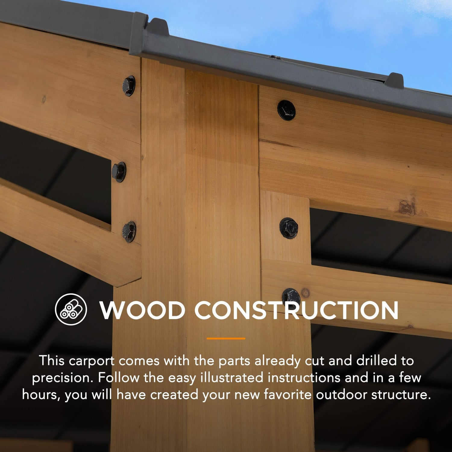 - 【 Durable & Stability Structure】- This wood carport is made of a durable and sturdy steel roof that provides shade from the sun or keeps the rain out, while the premium cedar wood frame and components create a contemporary aesthetic.
