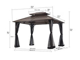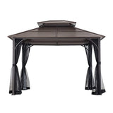 Sunjoy Hardtop Gazebo 10 x 12 ft. Outdoor Gazebo, Heavy Duty Steel Frame Gazebo, Double Tiered Metal Gazebo with Ceiling Hook and Mesh Netting, Brown