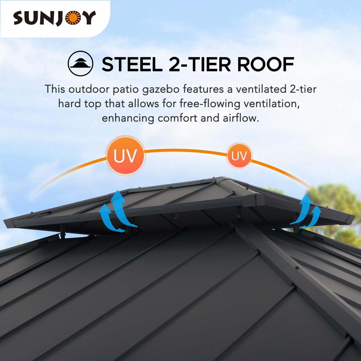 - 【Stability & Protection】- Constructed from a powder-coated matte black 2-tier steel roof and frame, this outdoor gazebo provides shade and comfort from the heat, and shelter from rain and inclement weather.