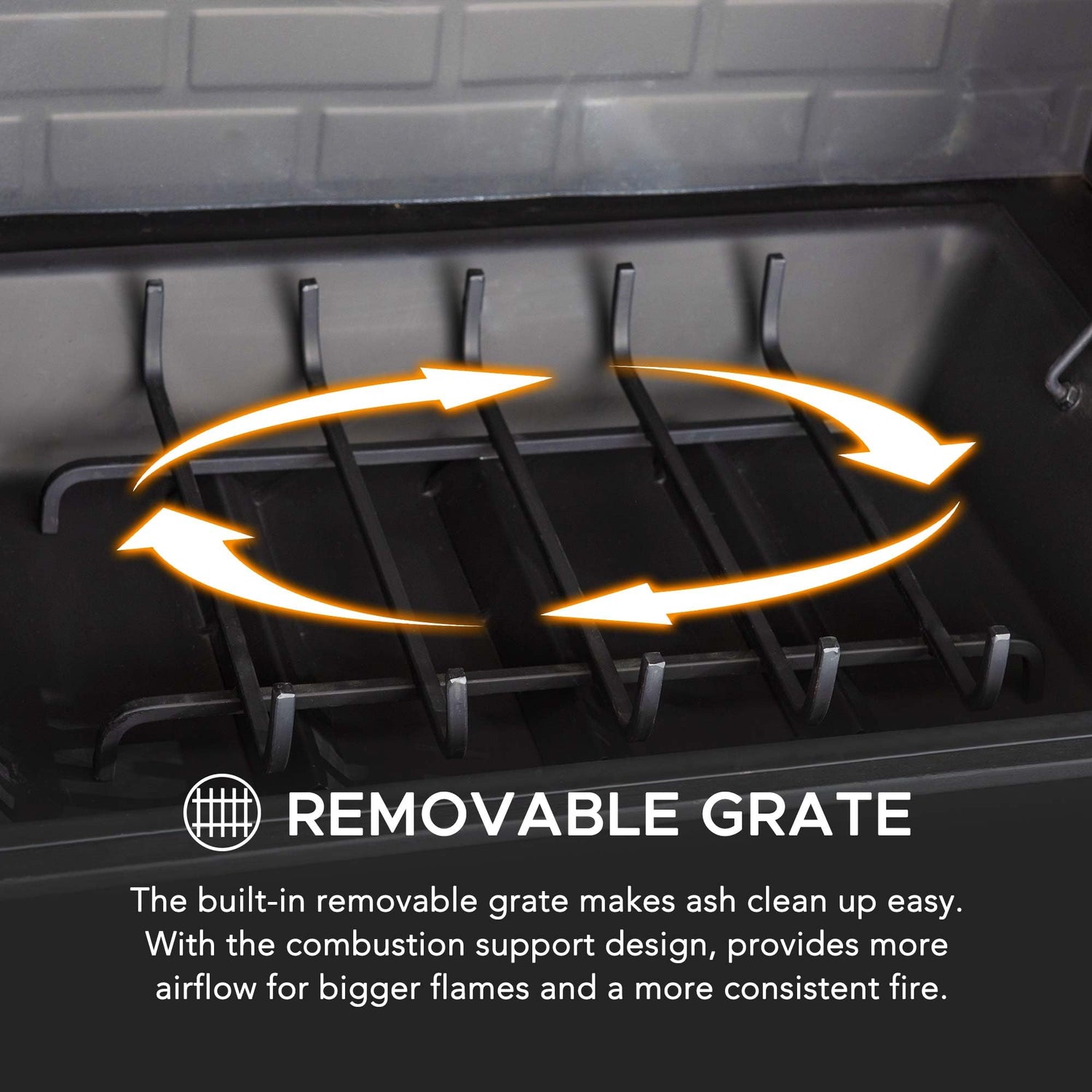 - Versatile with Built-In Shelves: Built-in shelves on both sides are great for displaying outdoor decor and the storage areaa underneath provide the perfect place to store logs. Whether for ambiance or warmth, this fireplace lets you spend more time outdoors in style and comfort.