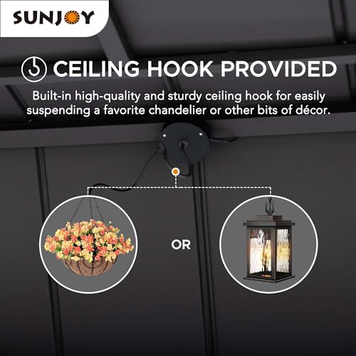 Sunjoy Wooden Grill Gazebo, 8 x 12 ft. Steel Hardtop Gazebo with Solar Power for Year-Round Grilling - 2 Full Size Grills, Griddles or Smokers -